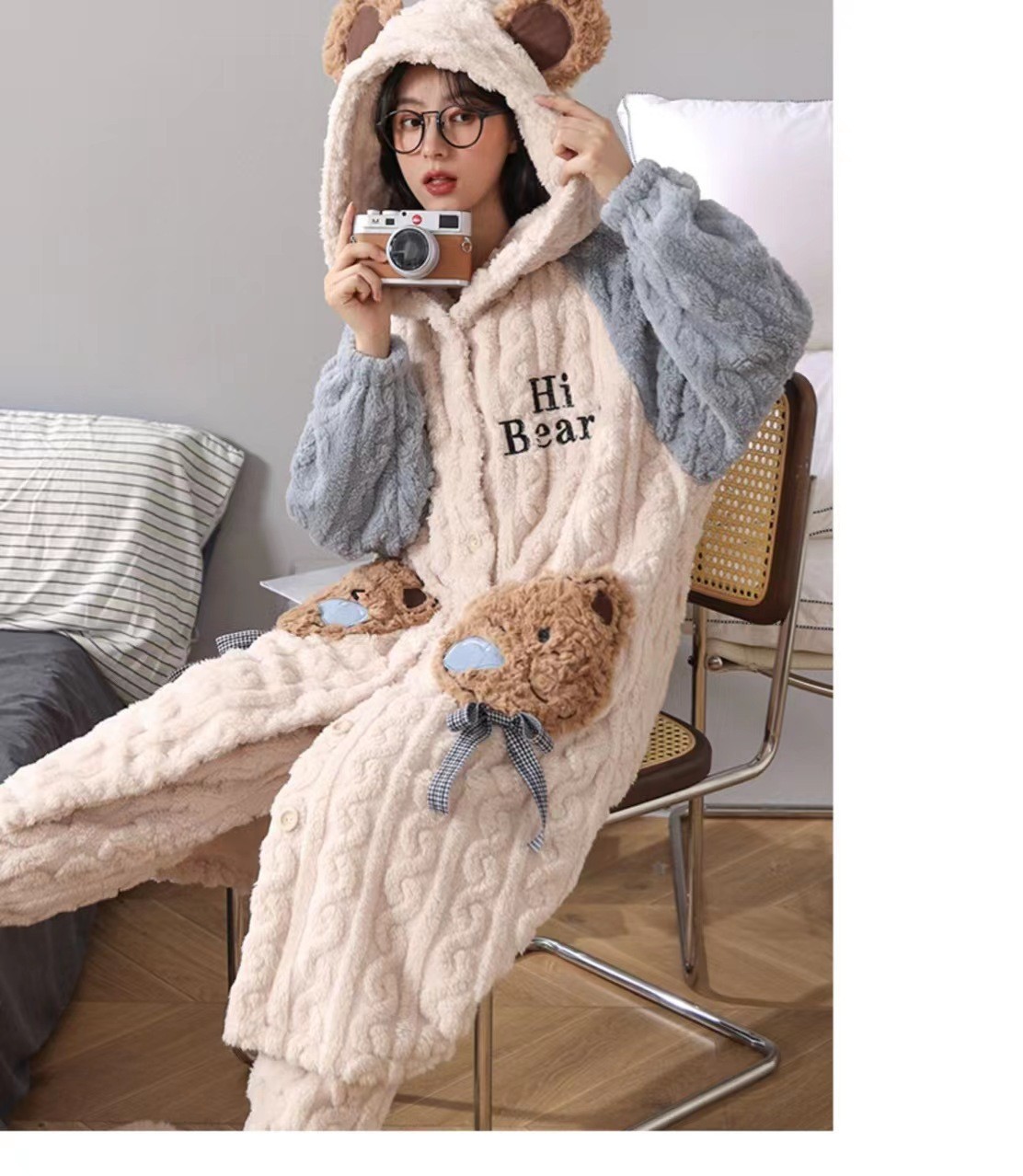 크로스보더 카피발라 후드 코랄벨벳 잠옷 만화 캐릭터 여성 겨울용 멜로디 홈웨어 맞춤 제작 가능스토어 가기