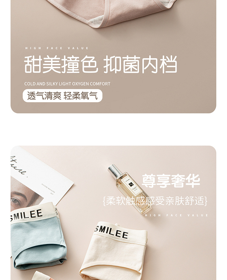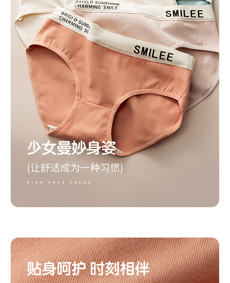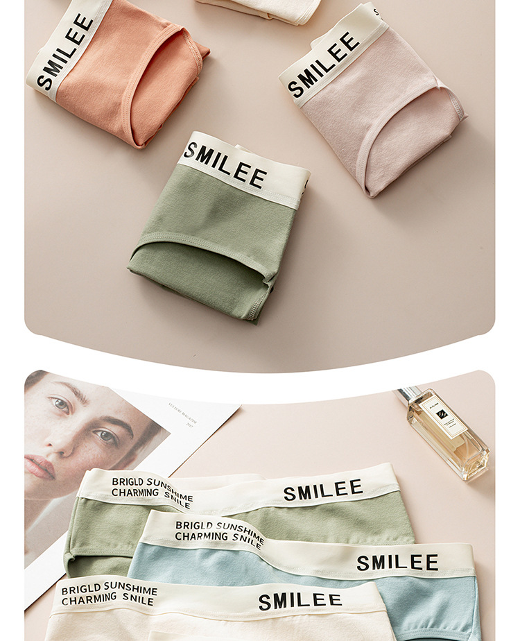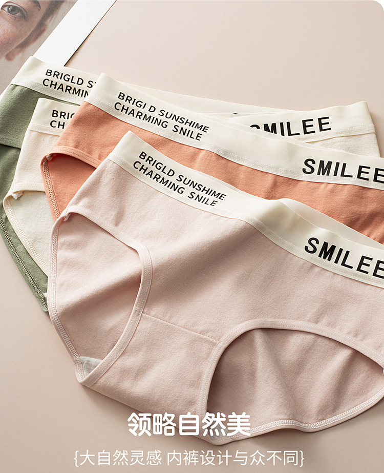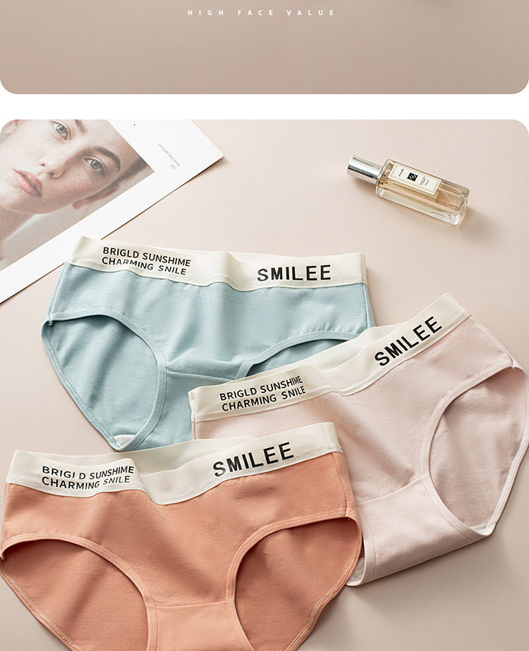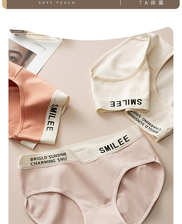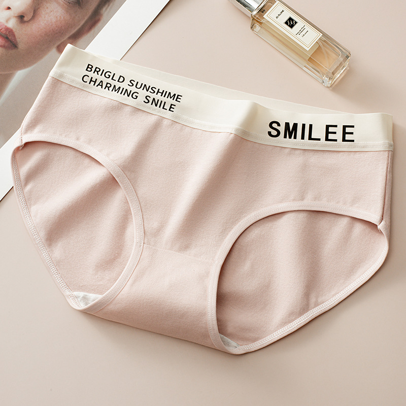 공장 도매 간단한 편지 스포츠 여자 면화 팬티 숙녀 7A 면 가랑이 원활한 중간 허리 브리프
