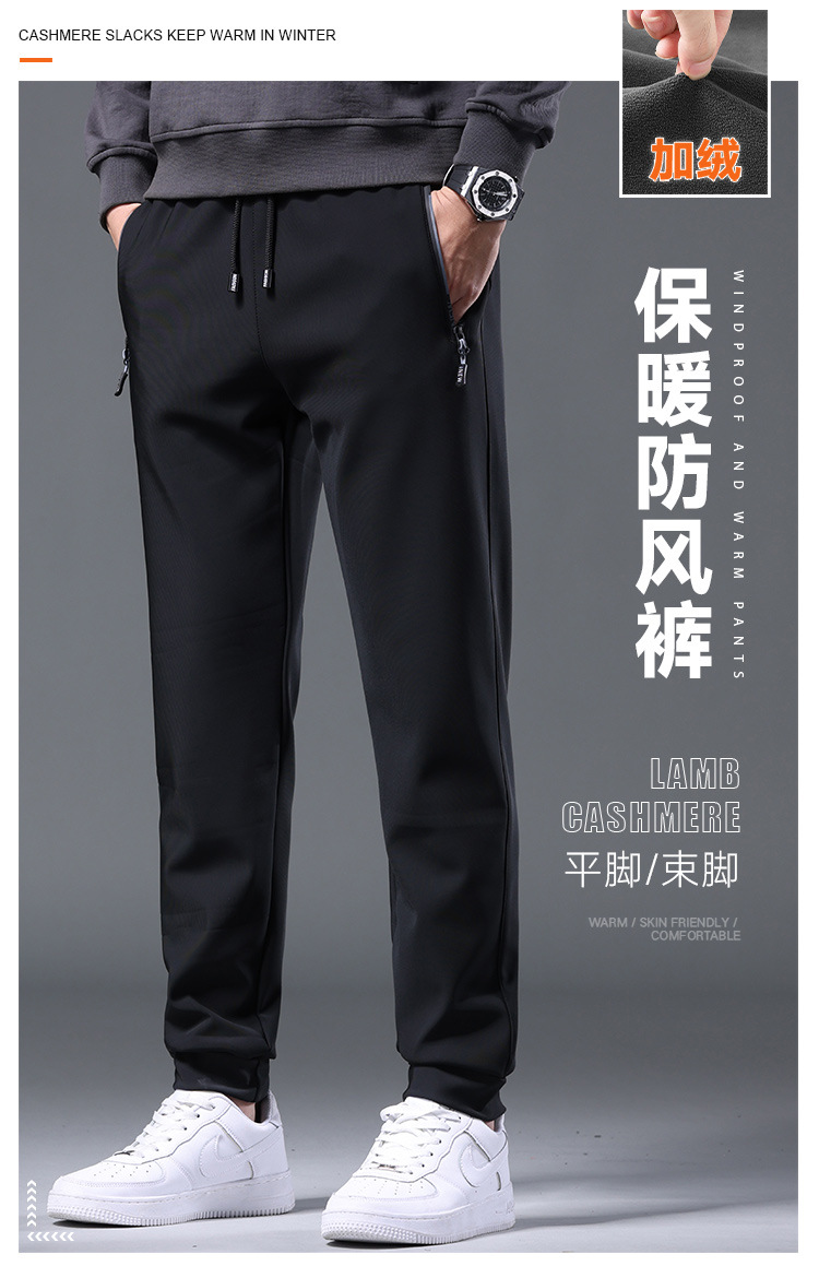 남자 양털-라이트 바지 캐주얼 남자 운동복 느슨한 스트레이트-다리 스포츠 바지 가을과 겨울 따뜻한 바지 솔리드 컬러 올 매치