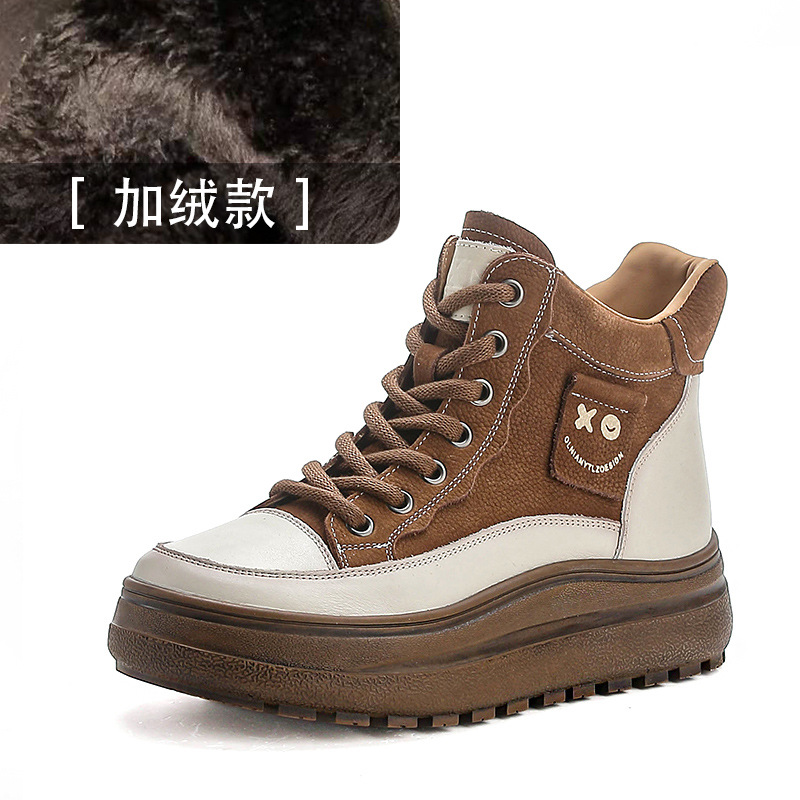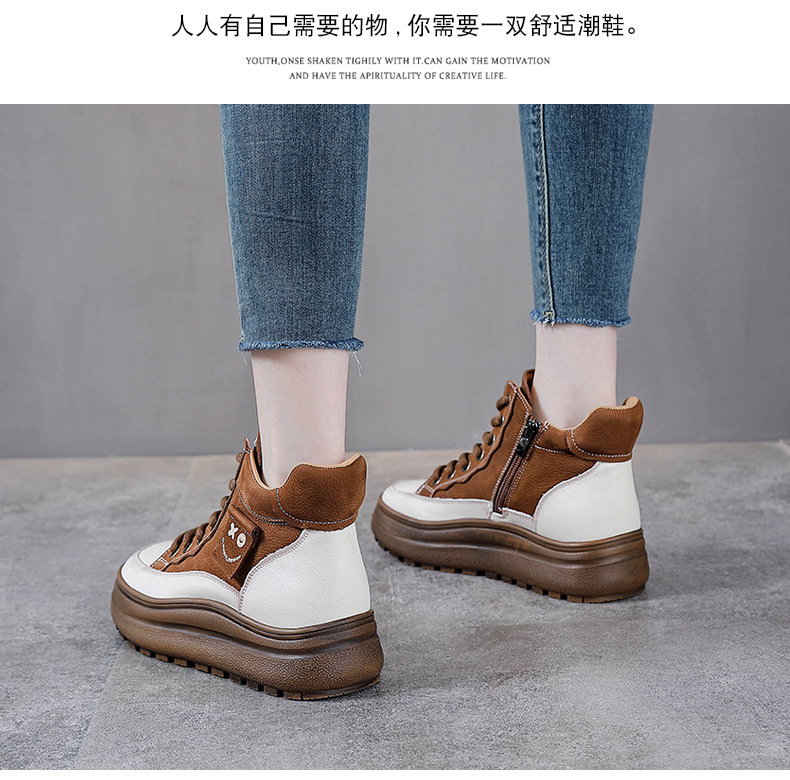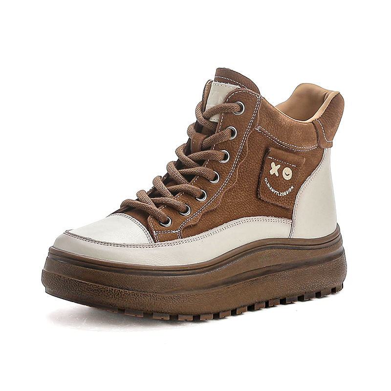 부츠 여성의 2024 새로운 짧은 부츠 정품 가죽 마틴 부츠 다크 브라운 레트로 여성 신발 탑 레이어 카우보이 민족 스타일 가을과 겨울스토어 가기