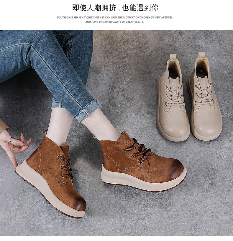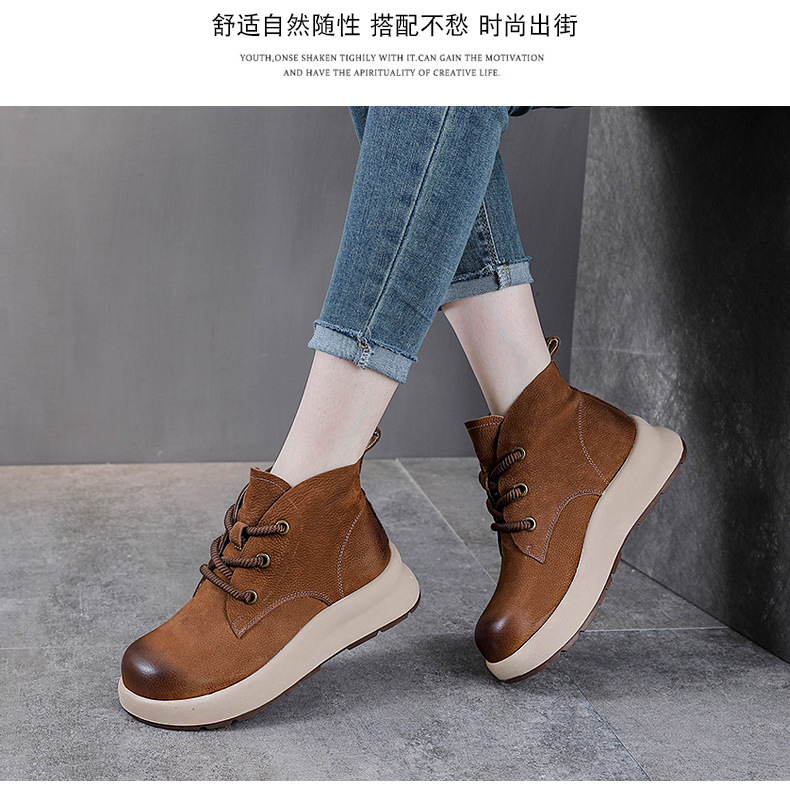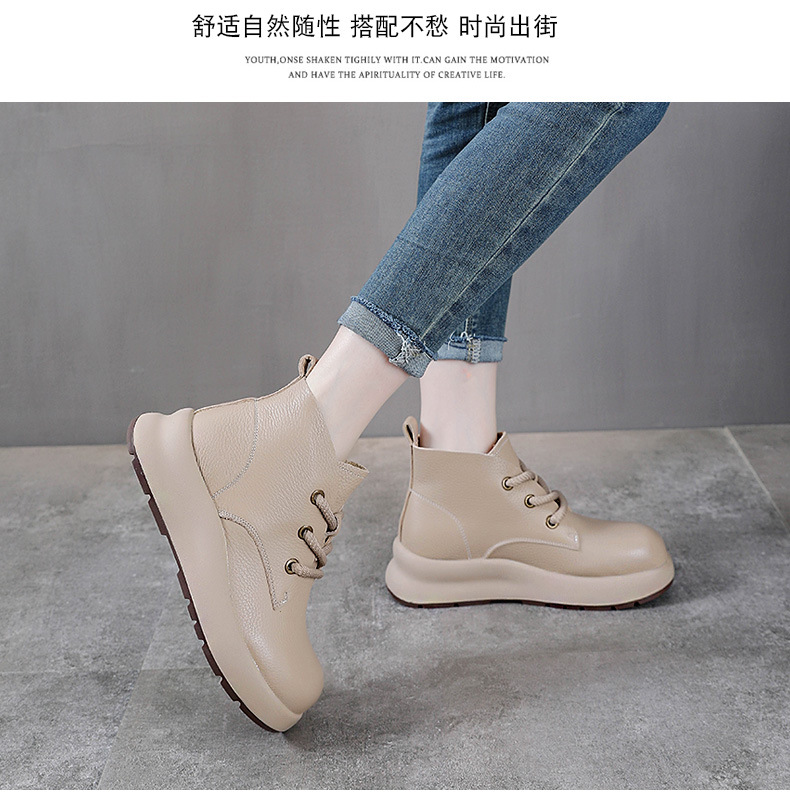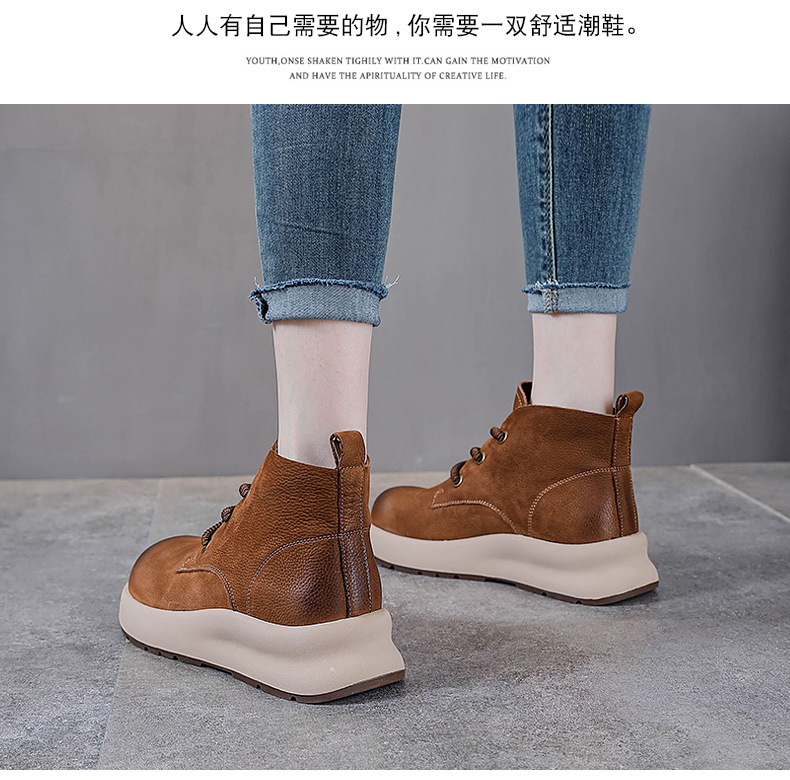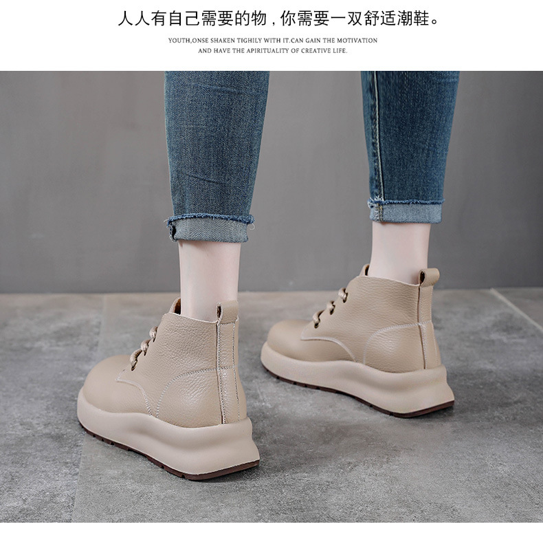 정품 가죽 영국 스타일 마틴 여성 가을 및 겨울 새로운 복고풍 탑 레이어 Cowhide 짧은 부츠 운동화 하이 탑 캐주얼 운동화스토어 가기