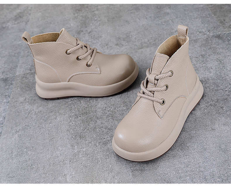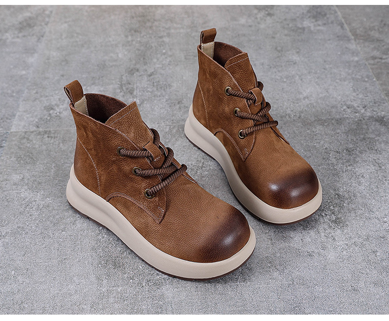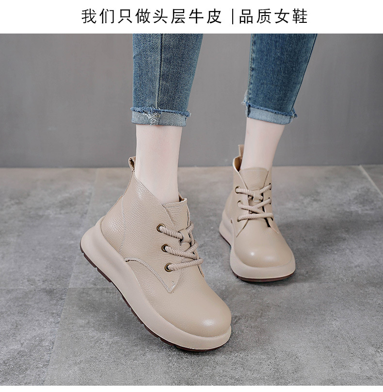 정품 가죽 영국 스타일 마틴 여성 가을 및 겨울 새로운 복고풍 탑 레이어 Cowhide 짧은 부츠 운동화 하이 탑 캐주얼 운동화