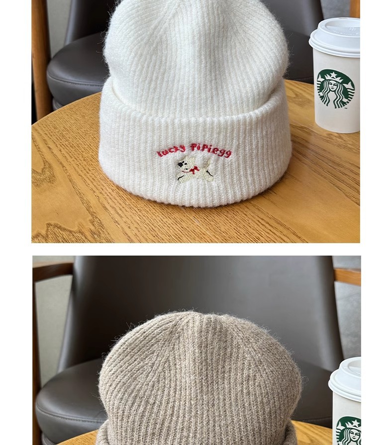 귀여운 강아지 자수 니트 모자 여성용 한국식 가을과 겨울 따뜻한 얼굴 작은 귀 보호 양모 모자 남성용 올 매치 콜드 햇스토어 가기