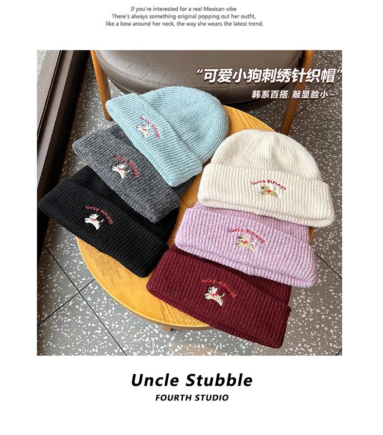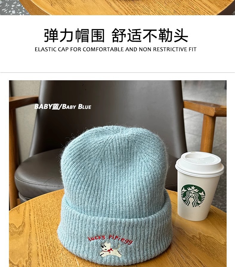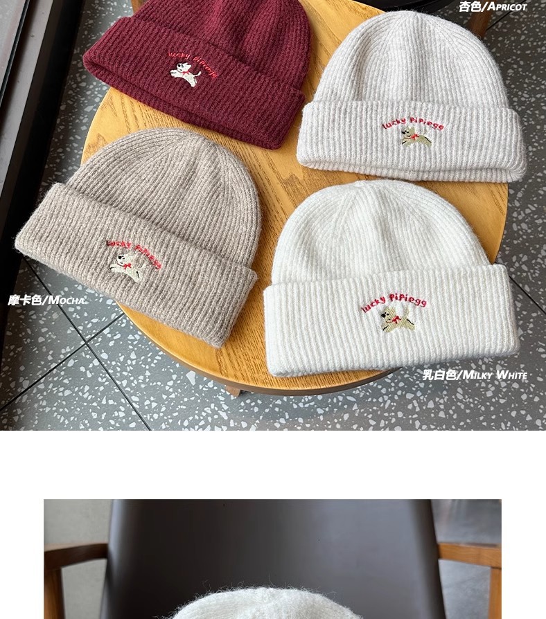 귀여운 강아지 자수 니트 모자 여성용 한국식 가을과 겨울 따뜻한 얼굴 작은 귀 보호 양모 모자 남성용 올 매치 콜드 햇