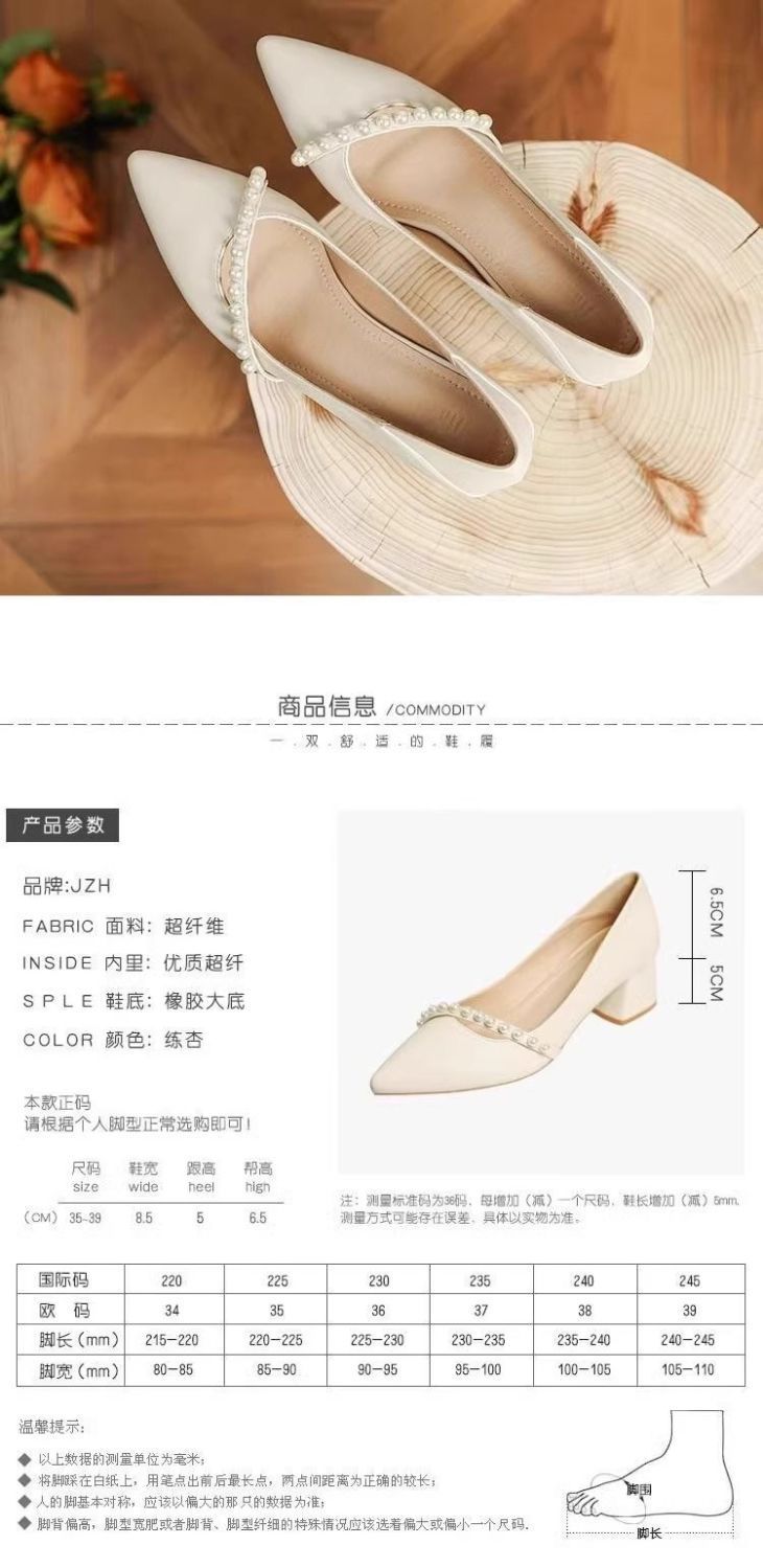 2025 봄 신상 얕은 입 뾰족한 부드러운 가죽 두꺼운 굽 중간 굽 저녁 바람 요정 부드럽고 다재다능한 여성용 하이힐