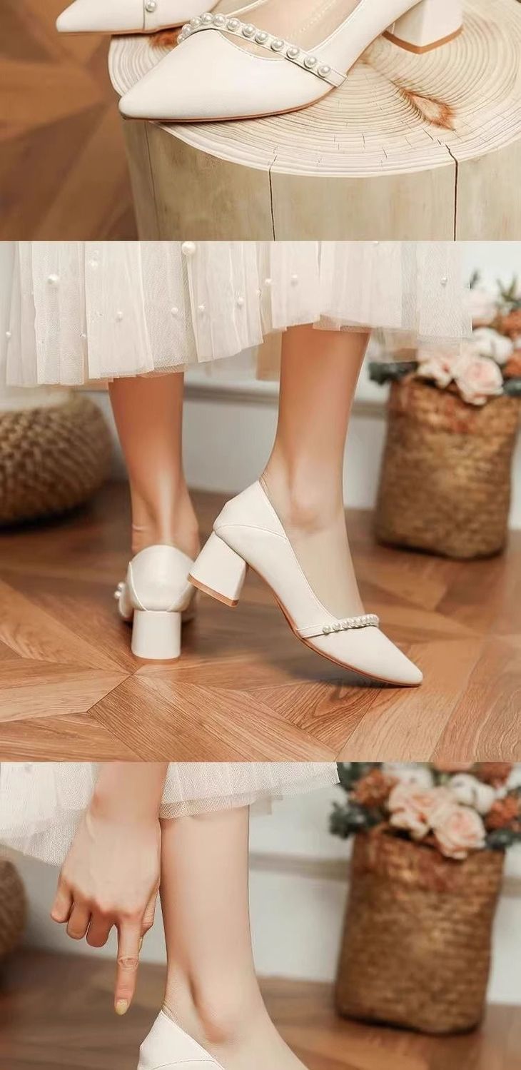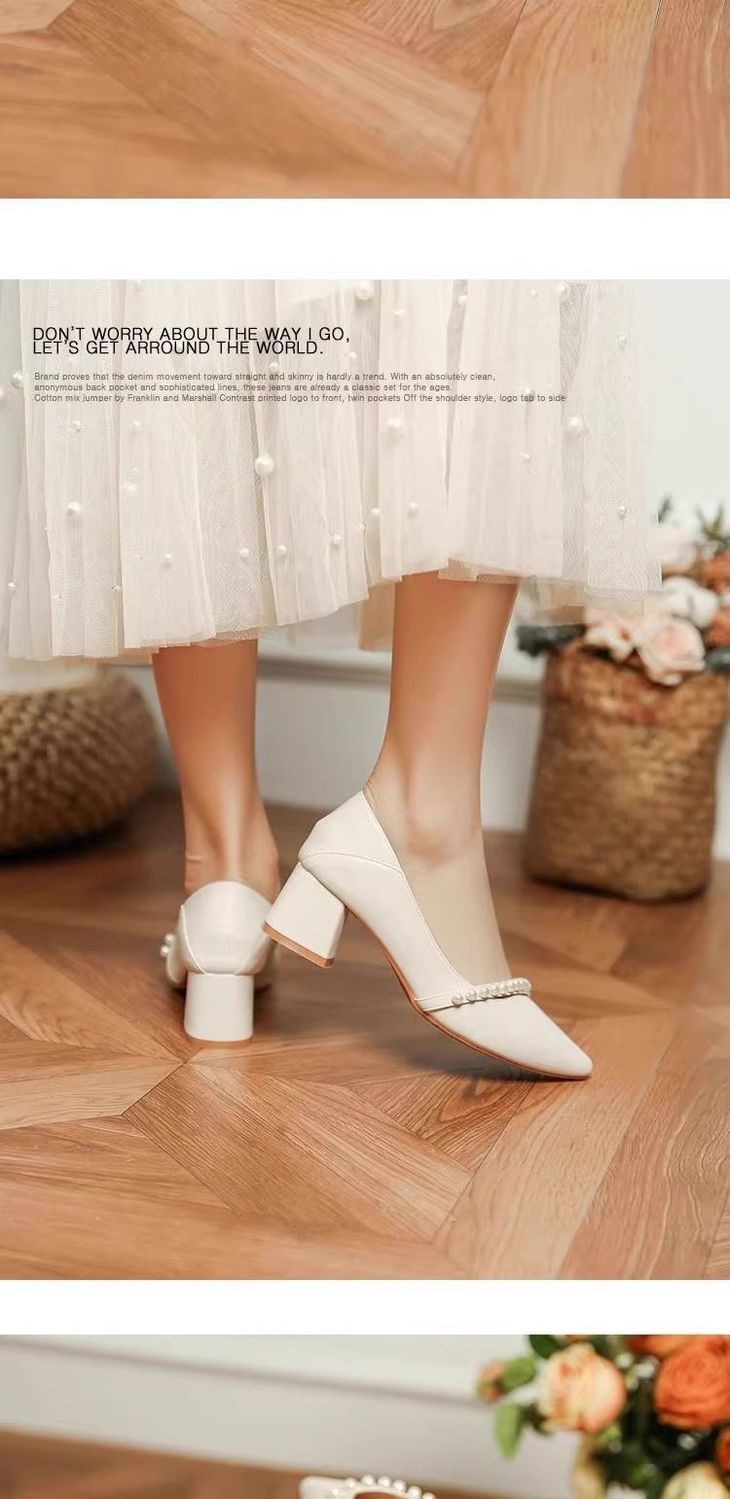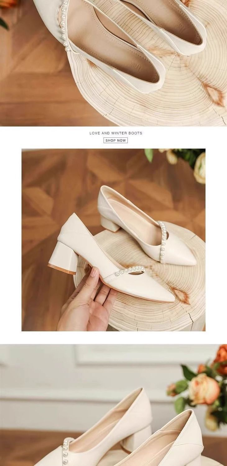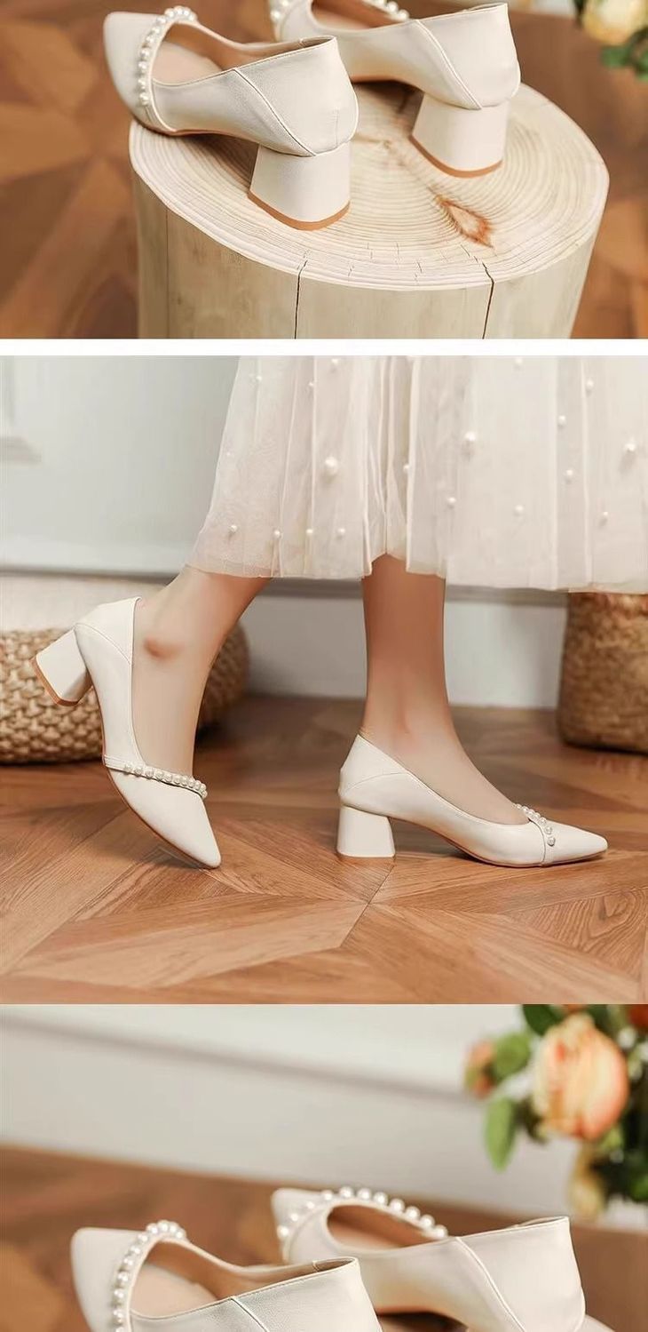2025 봄 신상 얕은 입 뾰족한 부드러운 가죽 두꺼운 굽 중간 굽 저녁 바람 요정 부드럽고 다재다능한 여성용 하이힐스토어 가기