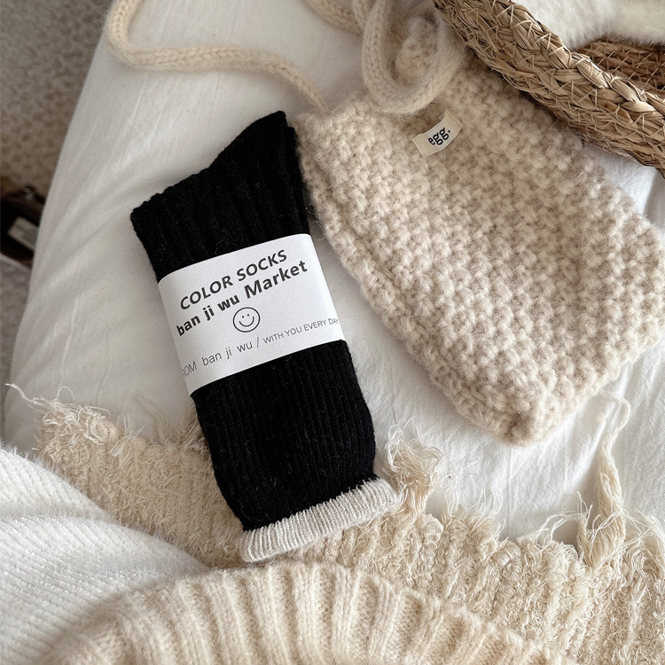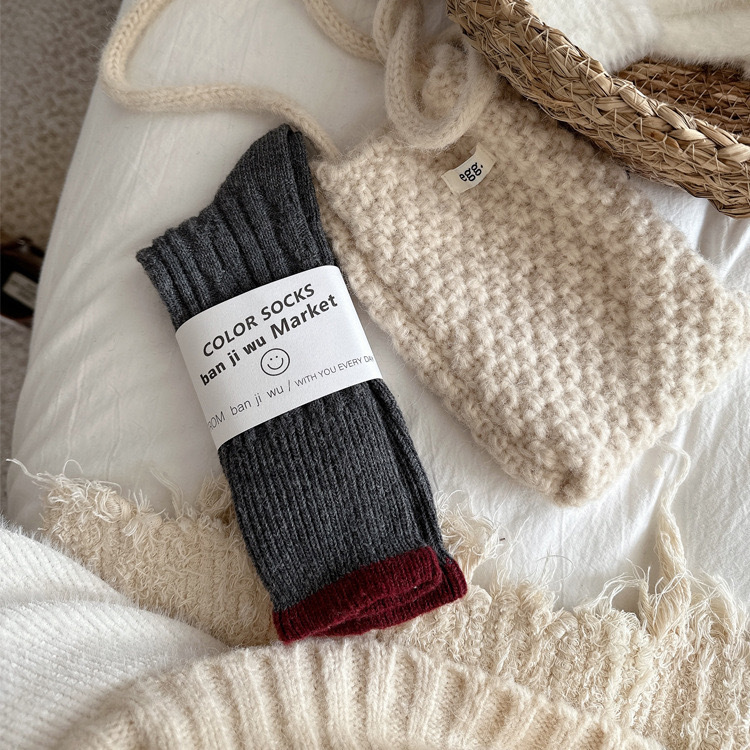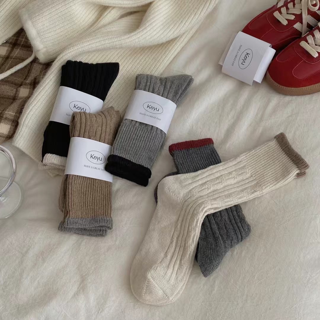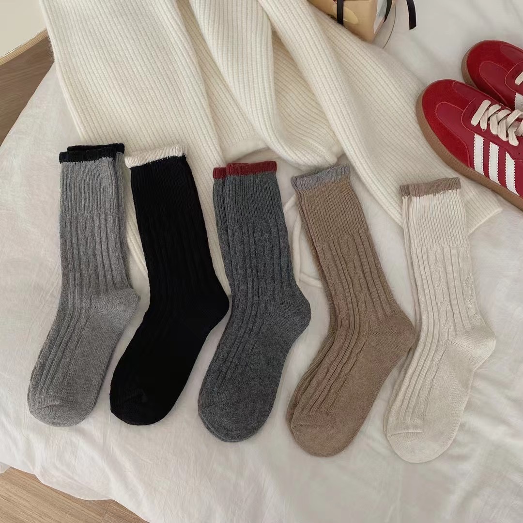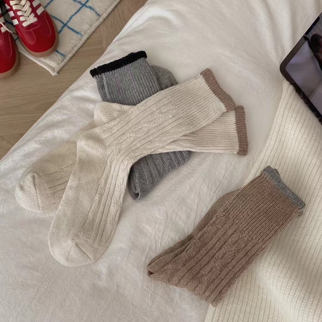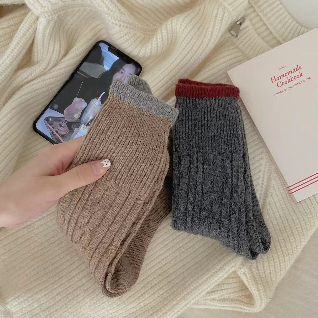한국 스타일 가을 겨울 대비 컬러 트위스트 양말 여성용 미드 튜브 양말 양모 두꺼운 따뜻한 복고풍 니트 스택 양말스토어 가기