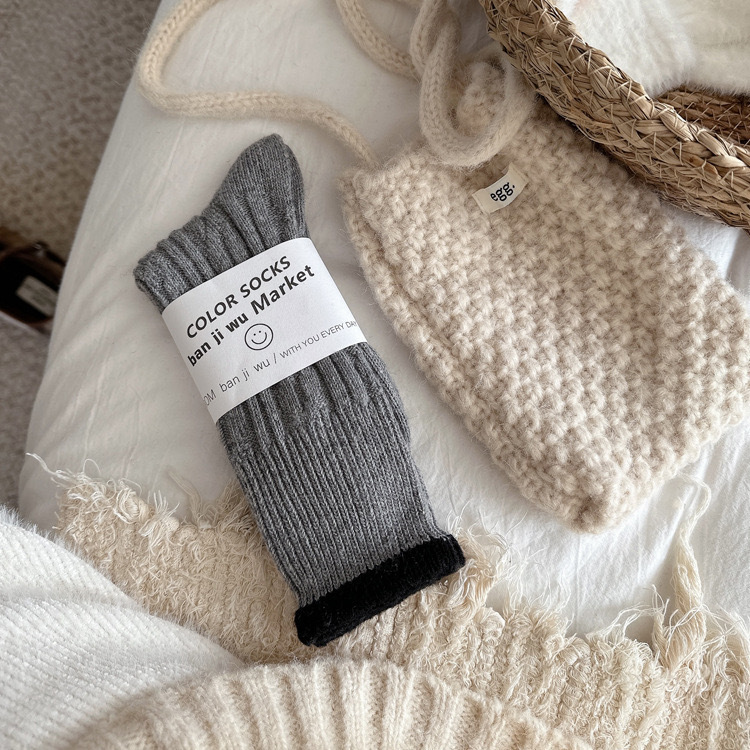袜子女灰蓝系秋冬中筒袜棉袜羊毛袜组合小红书抖音同款女袜堆堆袜 RMB:3.80