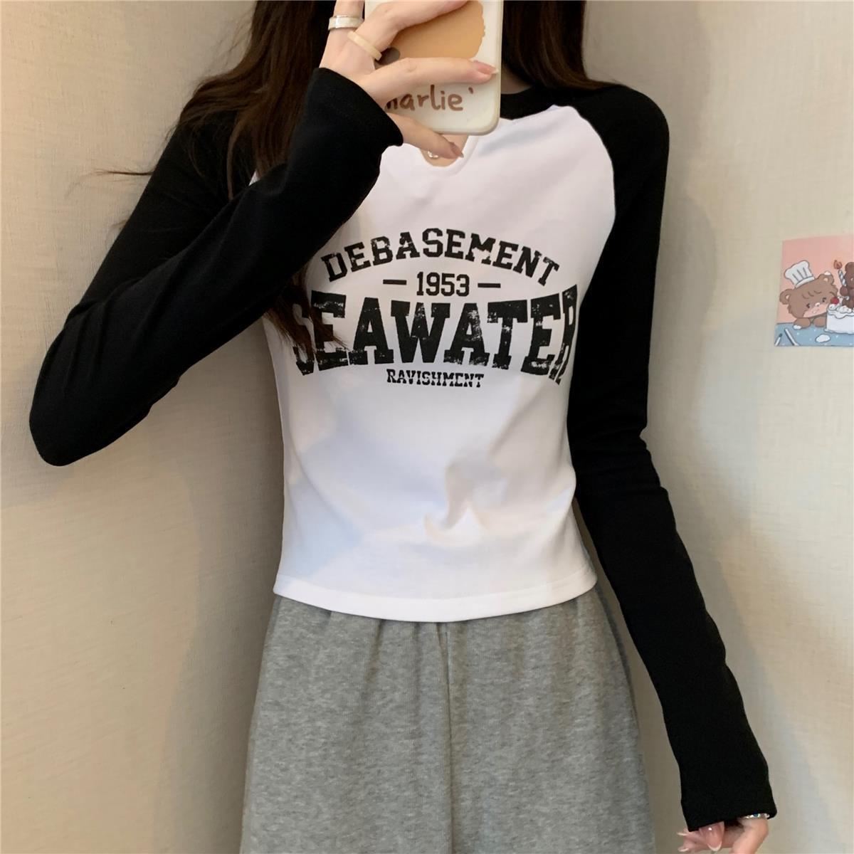 2024 년 새로운 가을과 겨울 플러스 사이즈 여성용 라글란 슬리브 스레드 벨벳 긴소매 티셔츠베이스 셔츠 얇은 여성용 탑스토어 가기