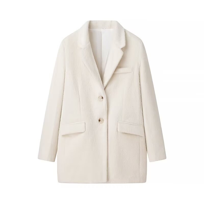 UC & ZA 국경 여성 2024 가을/겨울 새로운 게으른 느슨한 캐주얼 2 버튼 긴 울 세트 재킷스토어 가기