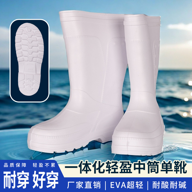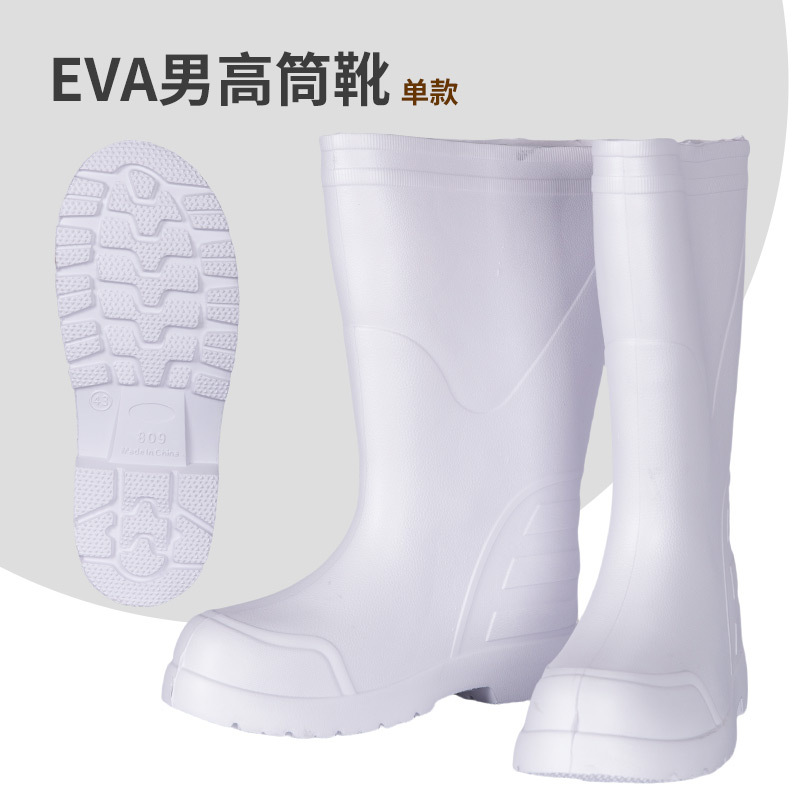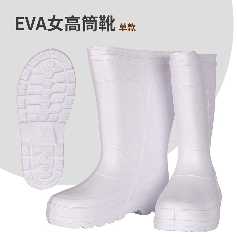 흰색 EVA 가벼운 음식 흰색 장화 남성과 여성을위한 미끄럼 방지 주방 고무 신발 수생 신발 식품 등급을 두껍게 만들었습니다.스토어 가기