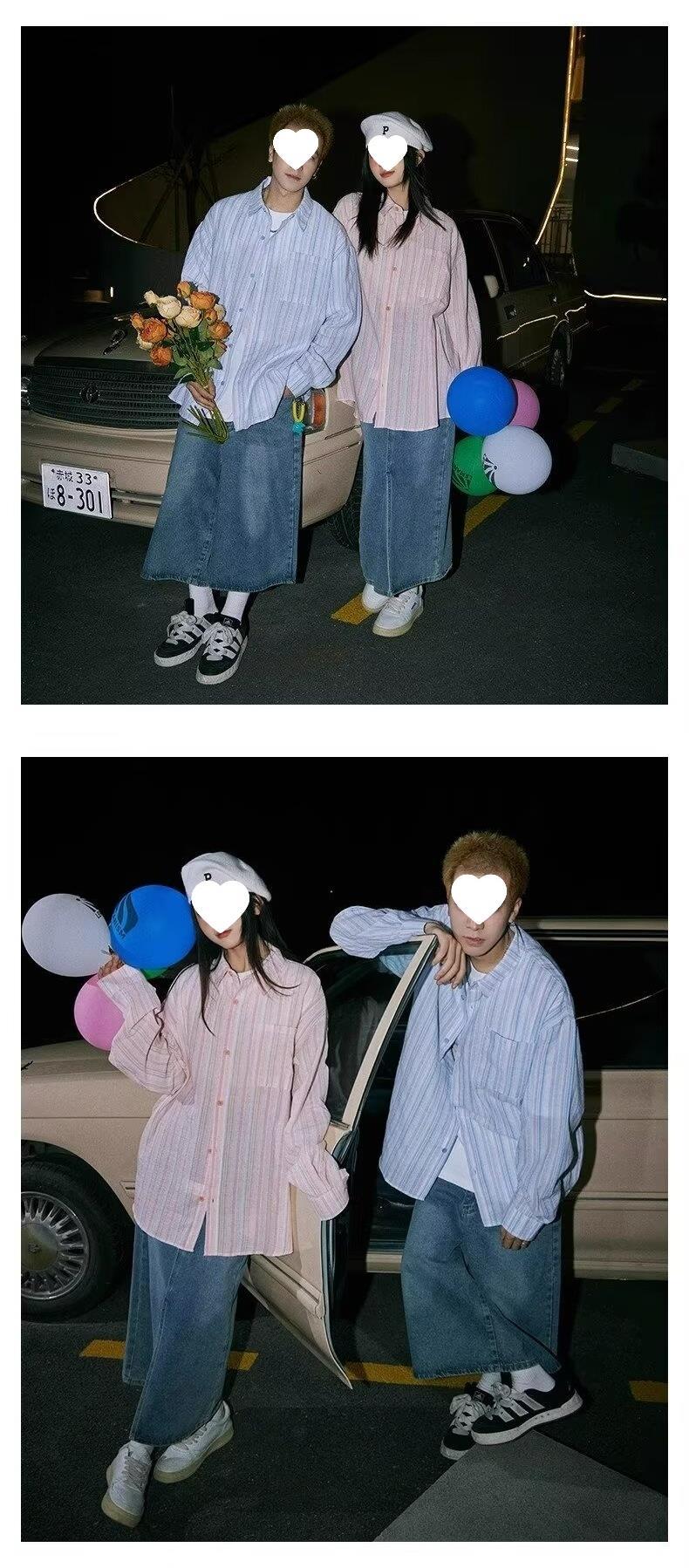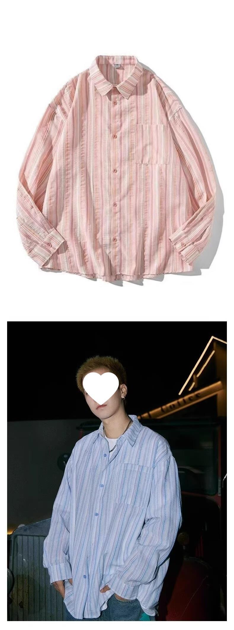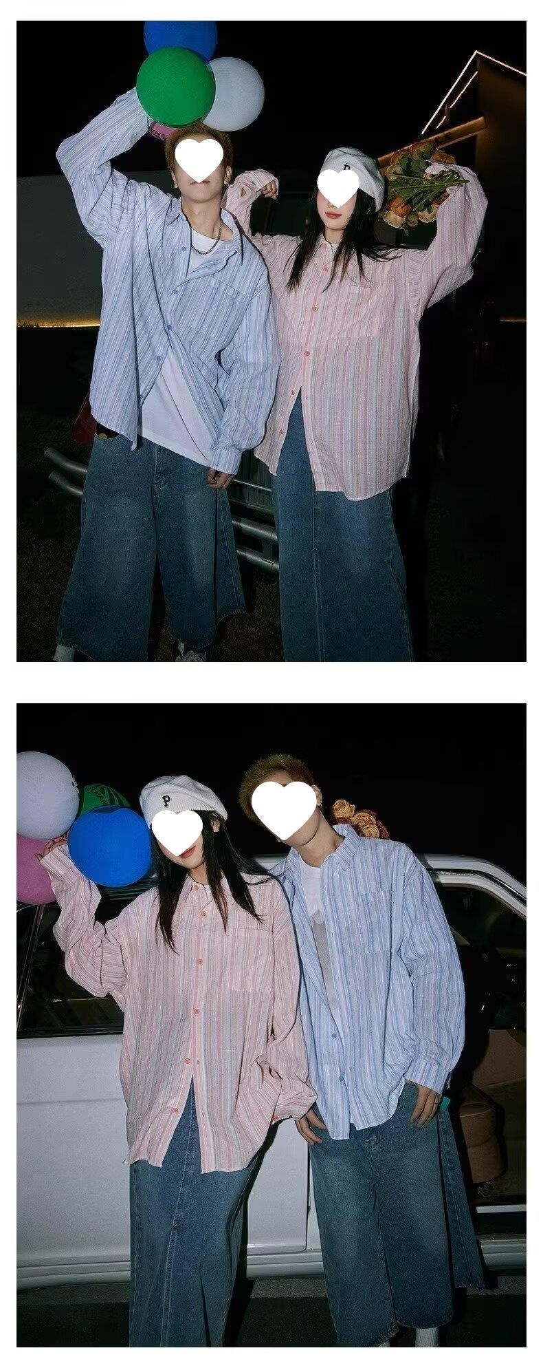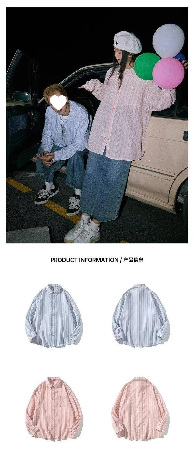 여름 줄무늬 긴팔 셔츠 선스크린 셔츠 남자 느슨한 올매치 캐주얼 셔츠 유행 브랜드 커플 코트 톱 여성스토어 가기