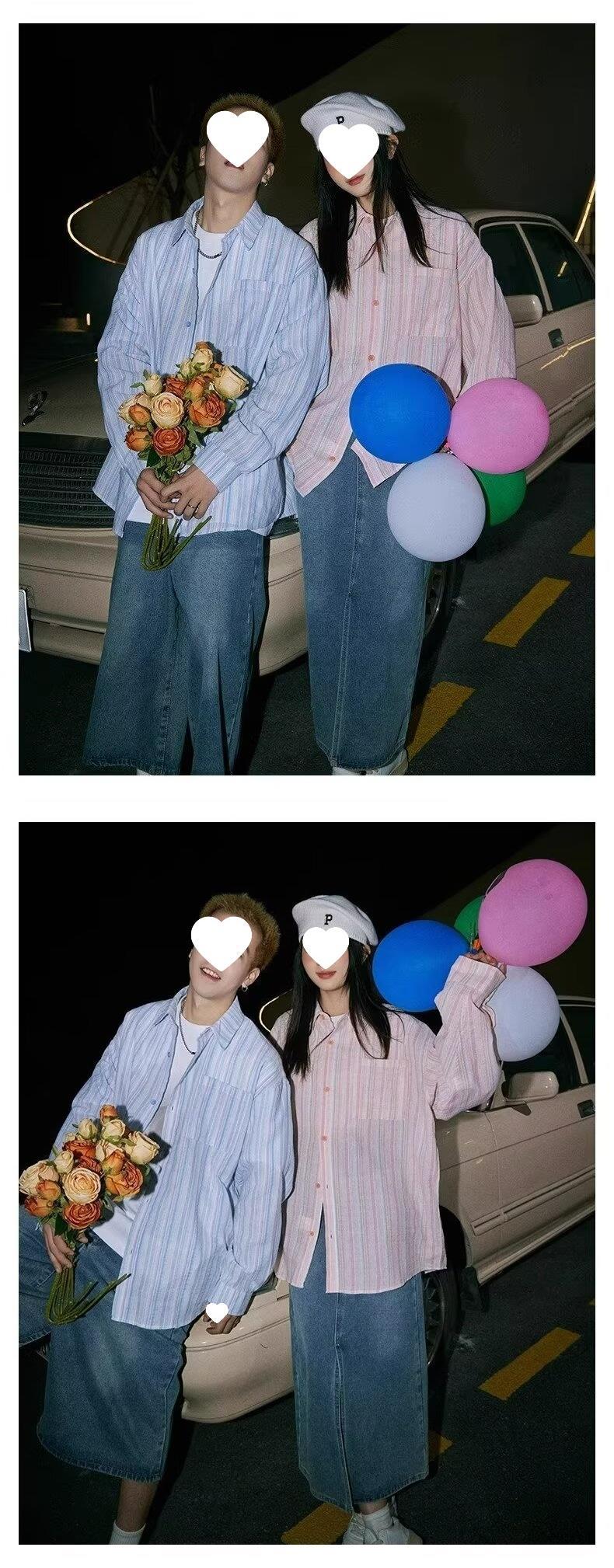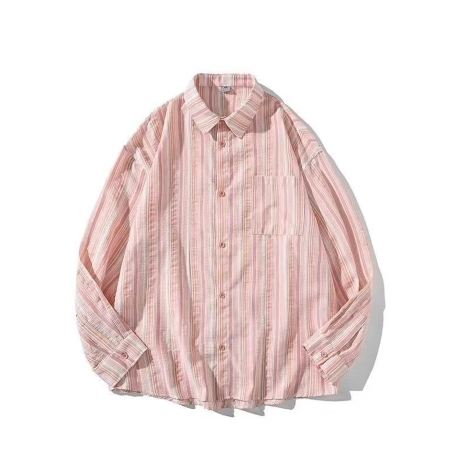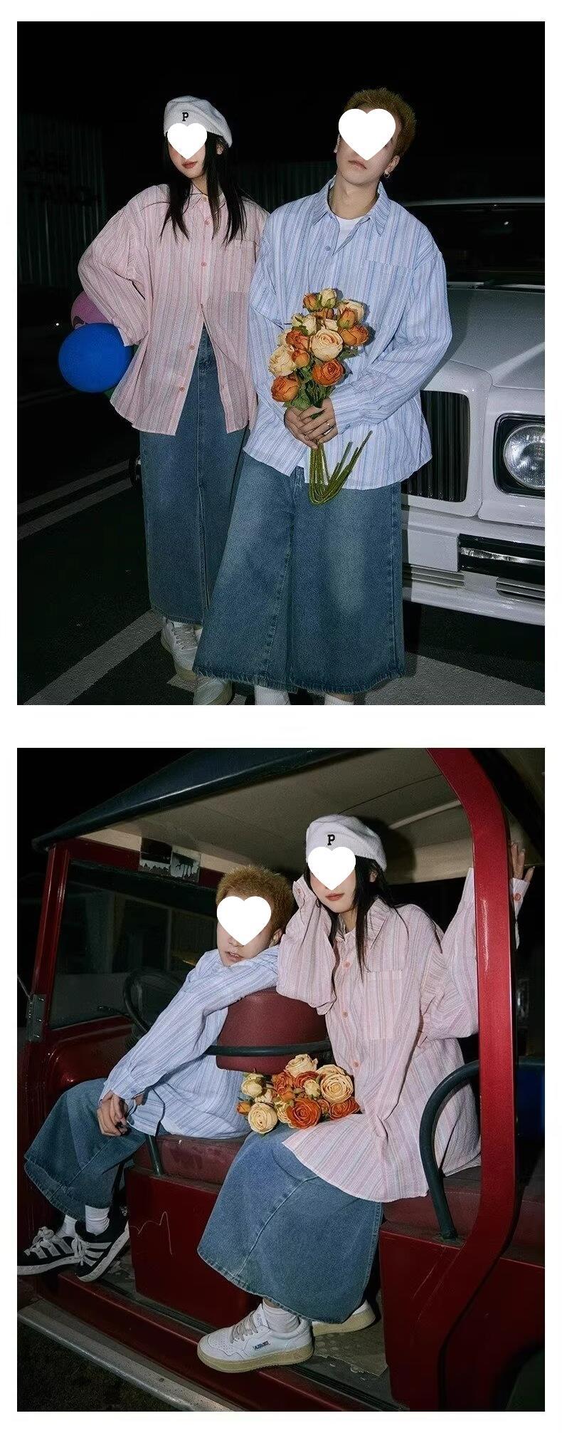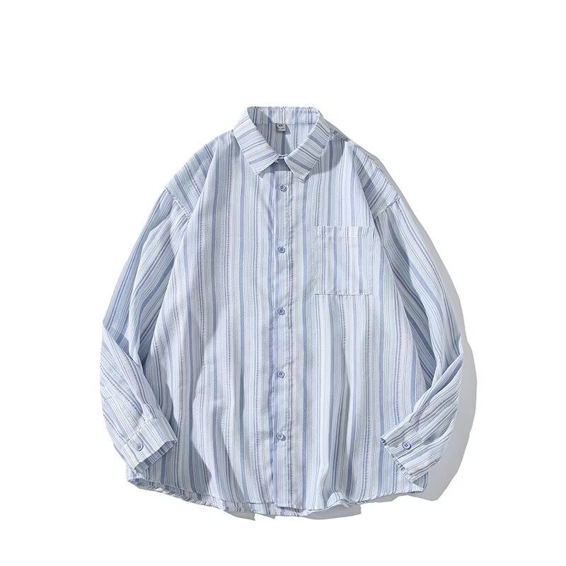 여름 줄무늬 긴팔 셔츠 선스크린 셔츠 남자 느슨한 올매치 캐주얼 셔츠 유행 브랜드 커플 코트 톱 여성스토어 가기
