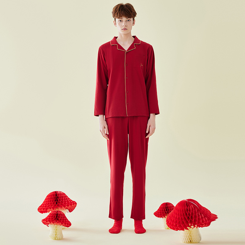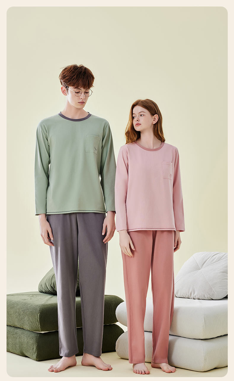 클래스 A 220g 커플 코튼 잠옷 남자의 봄과 가을 두꺼운 샌딩 따뜻한 집 옷 가을과 겨울 남자 잠옷