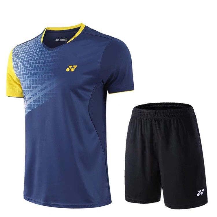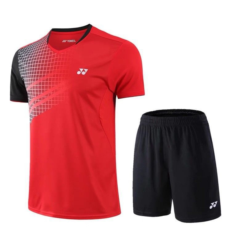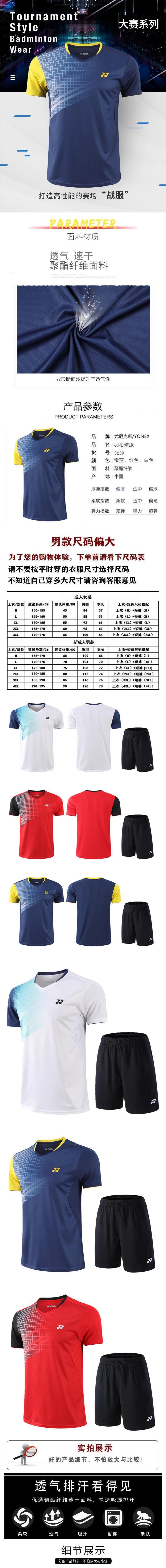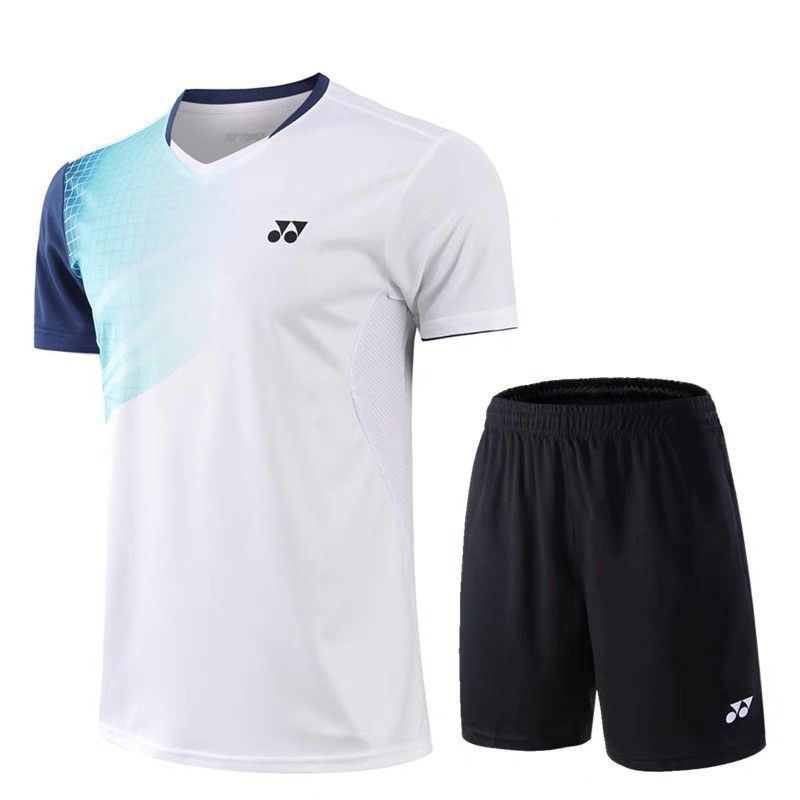 뉴 YY 배드민턴 세트 세트 남녀 최고 빠른 건조 통기성 라운드 넥 반팔 티셔츠 대회 세트 여름 No