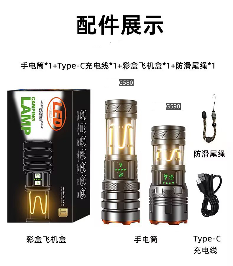 • G580 백색 레이저 손전등 [2 섹션 26650 + 데이터 케이블 + 색상 상자]