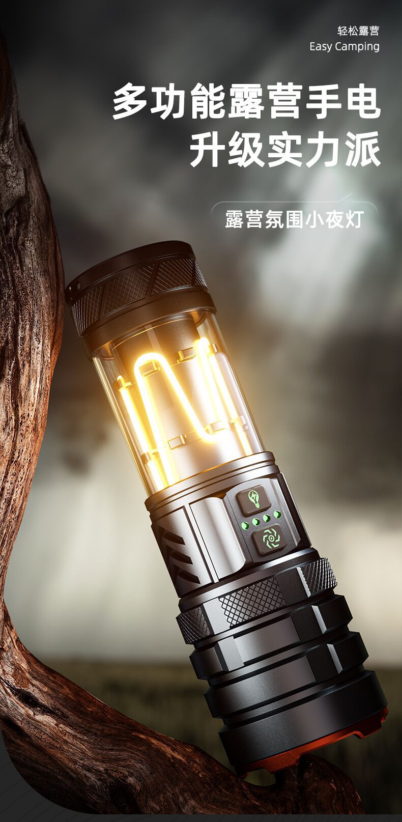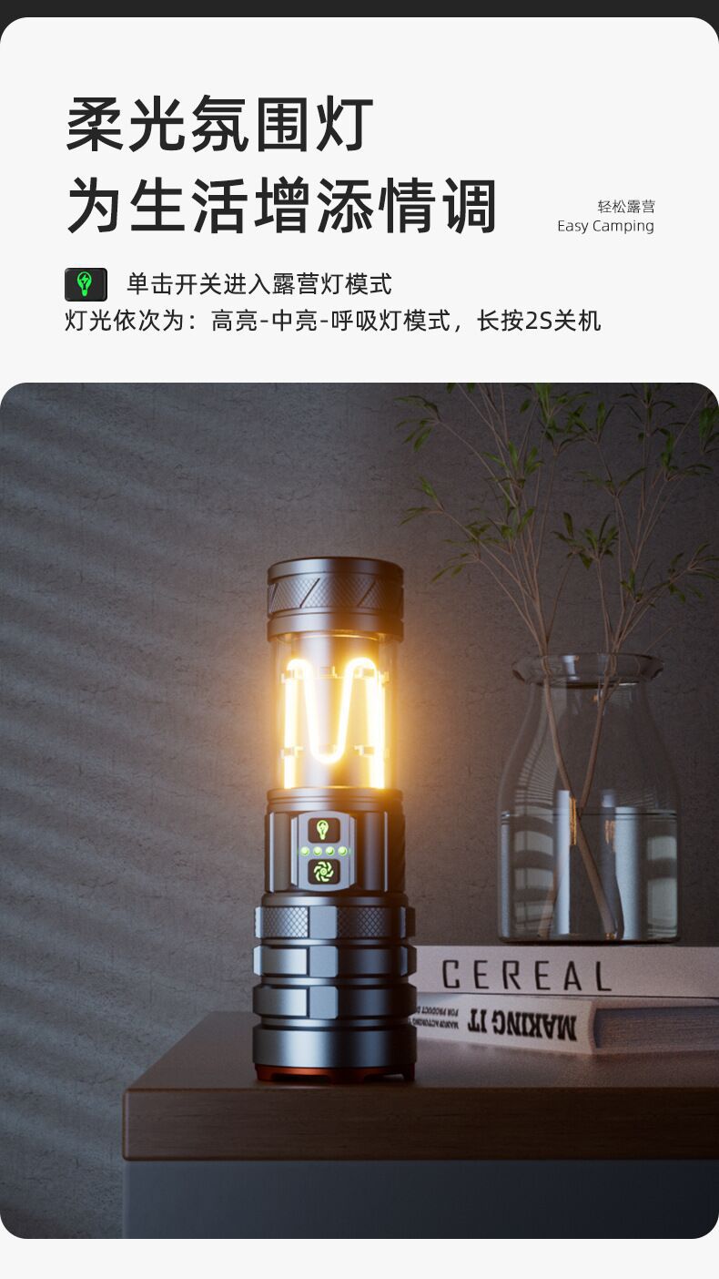 슈퍼 밝은 흰색 레이저 손전등 장거리 충전식 야외 홈 조명 다기능 줌 휴대용 캠핑 램프