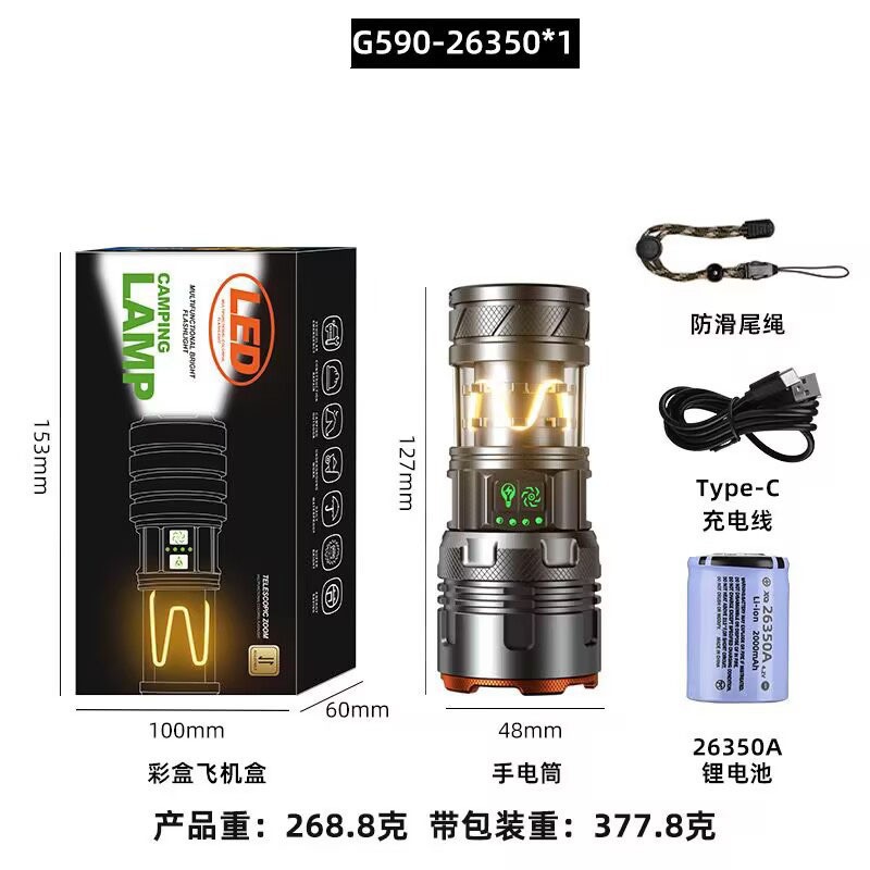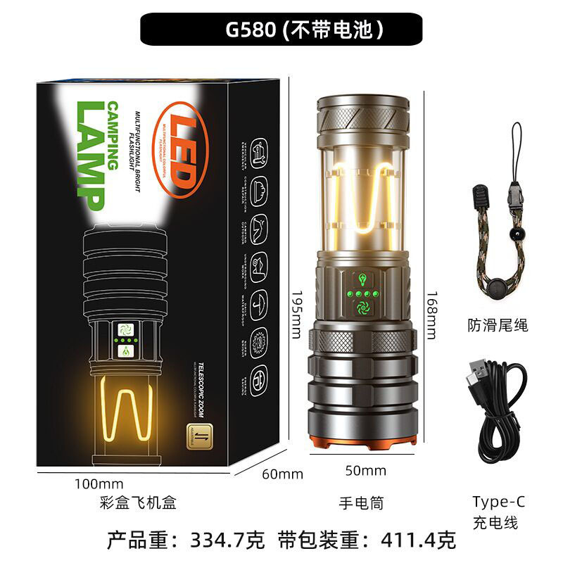 • G580 백색 레이저 손전등 [1 섹션 26650 + 데이터 케이블 + 색상 상자]