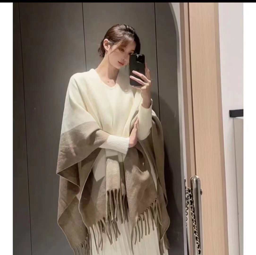 새로운 단색 양모 술 목도리 여성의 가을과 겨울 패션 올 매치 하이 엔드 센스 아우터 따뜻한 케이프 판초 코트스토어 가기