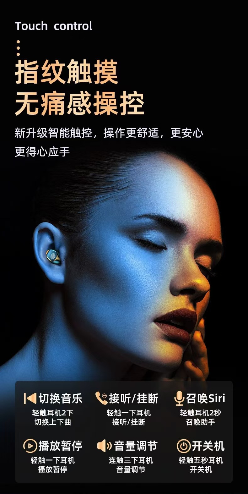 새로운 F9 지문 무선 블루투스 헤드셋 TWS5.1 국경 스포츠 레저 헤드셋 전원 디스플레이 터치