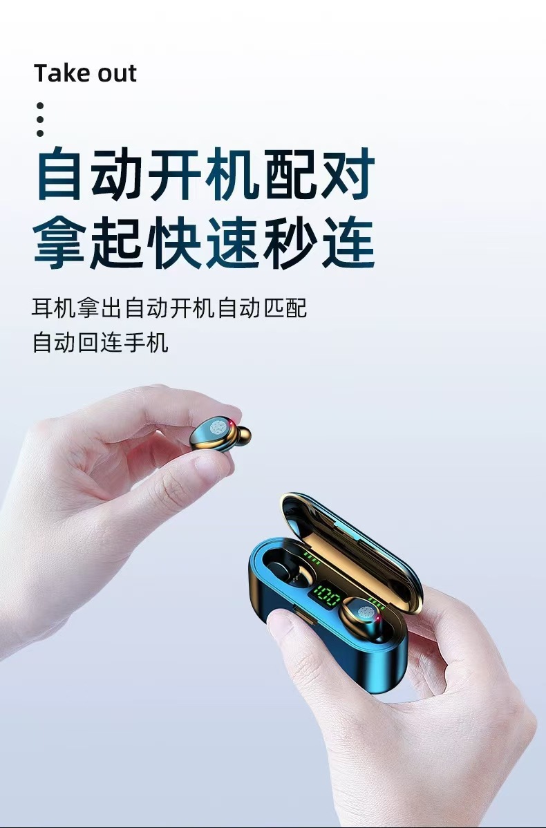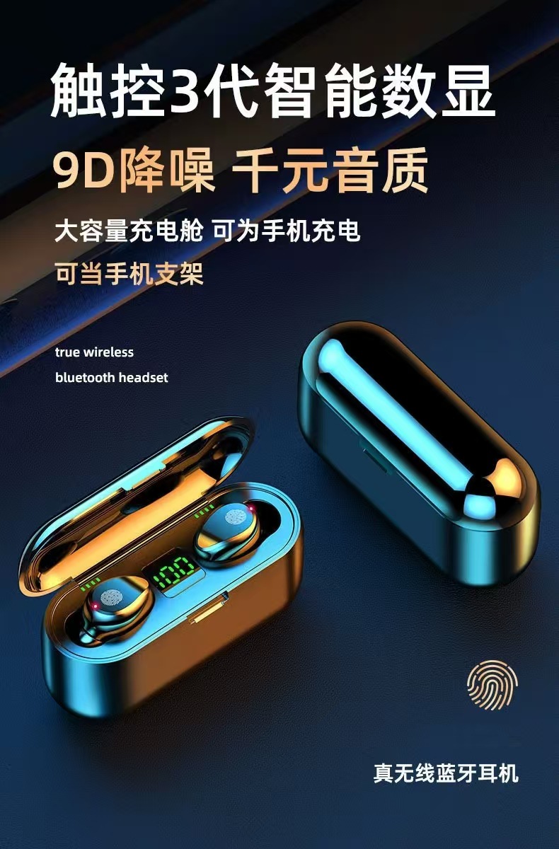 새로운 F9 지문 무선 블루투스 헤드셋 TWS5.1 국경 스포츠 레저 헤드셋 전원 디스플레이 터치스토어 가기