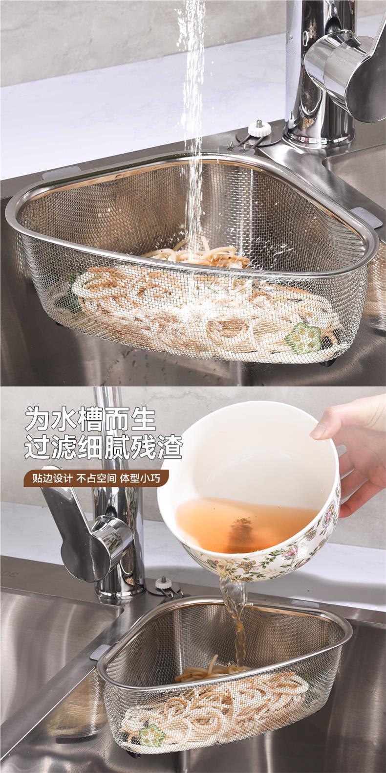 스테인레스 스틸 삼각형 주방 필터 메쉬 누출 초미세 Dregs 싱크 싱크 싱크 싱크 싱크 드레인 바구니스토어 가기