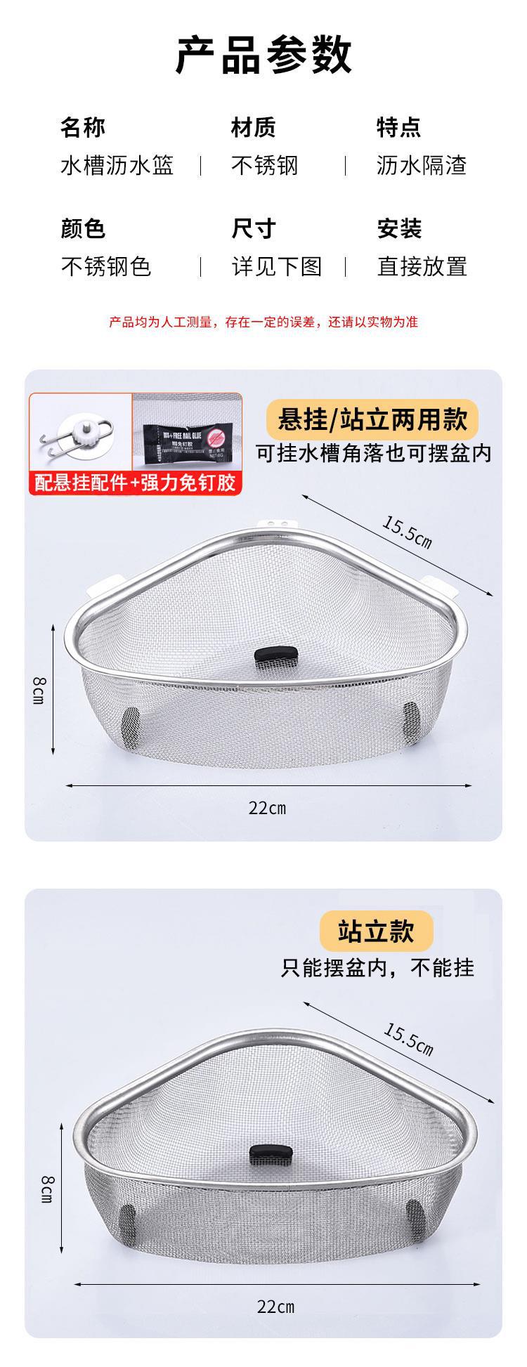 스테인레스 스틸 삼각형 주방 필터 메쉬 누출 초미세 Dregs 싱크 싱크 싱크 싱크 싱크 드레인 바구니