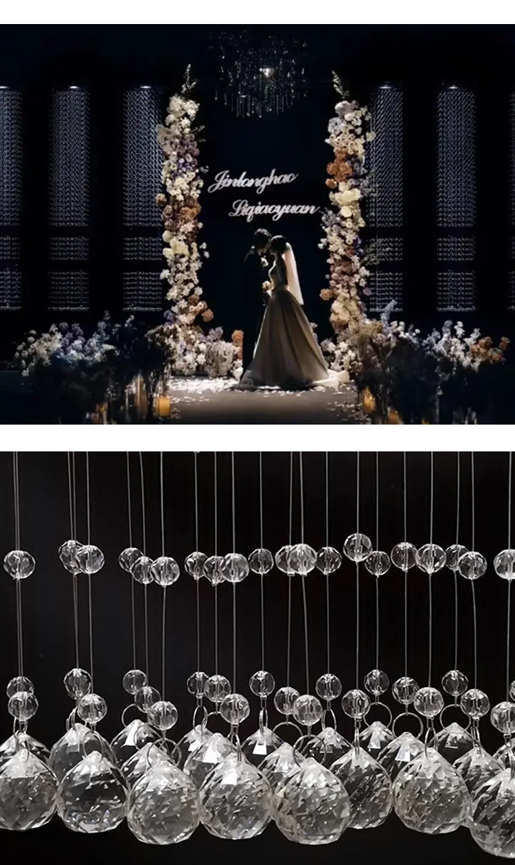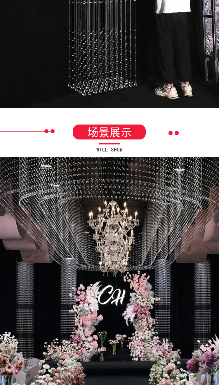婚庆道具吊顶镂空隔断菠萝断层水晶珠帘珠串酒店大厅舞台订婚布置