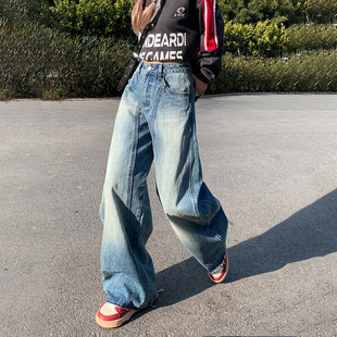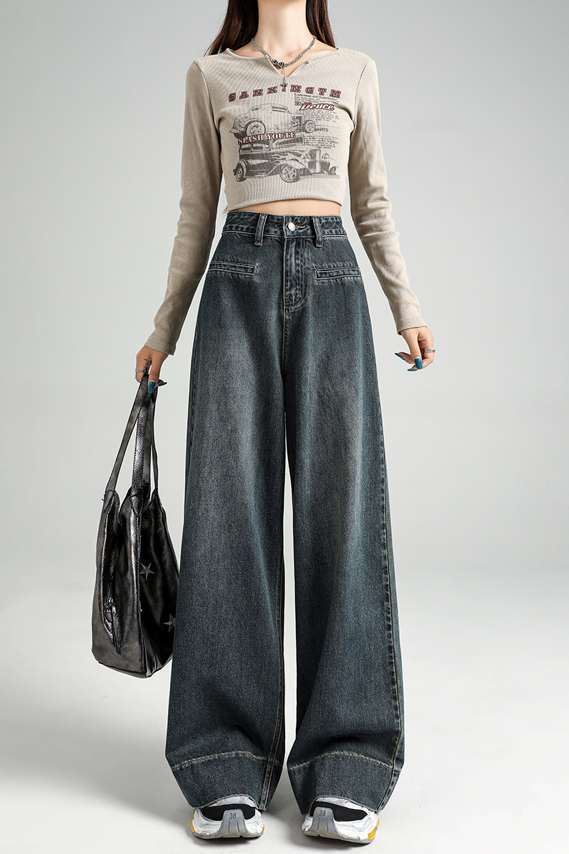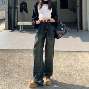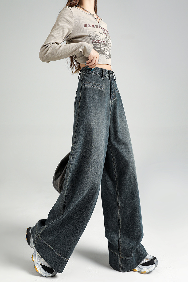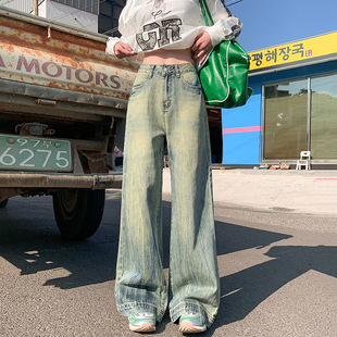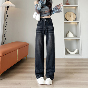 13 라인 청바지 여성 2024 가을 레트로 높은 허리 넓은 다리 바지 펜던트 슬리밍 스트레이트 바지