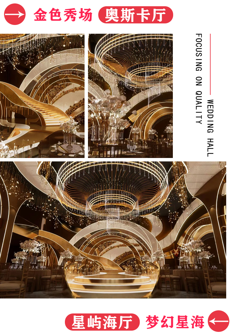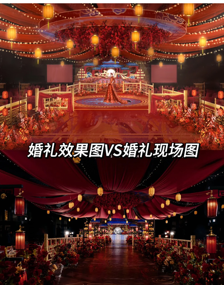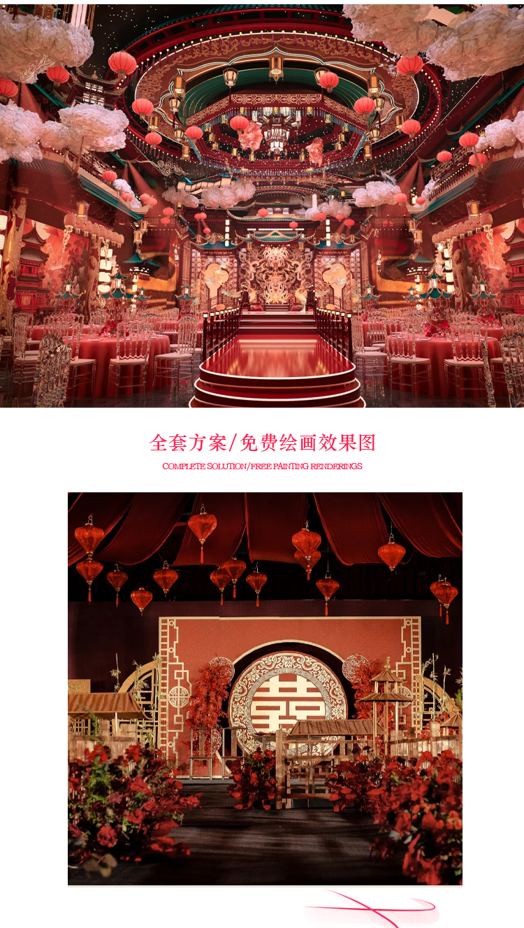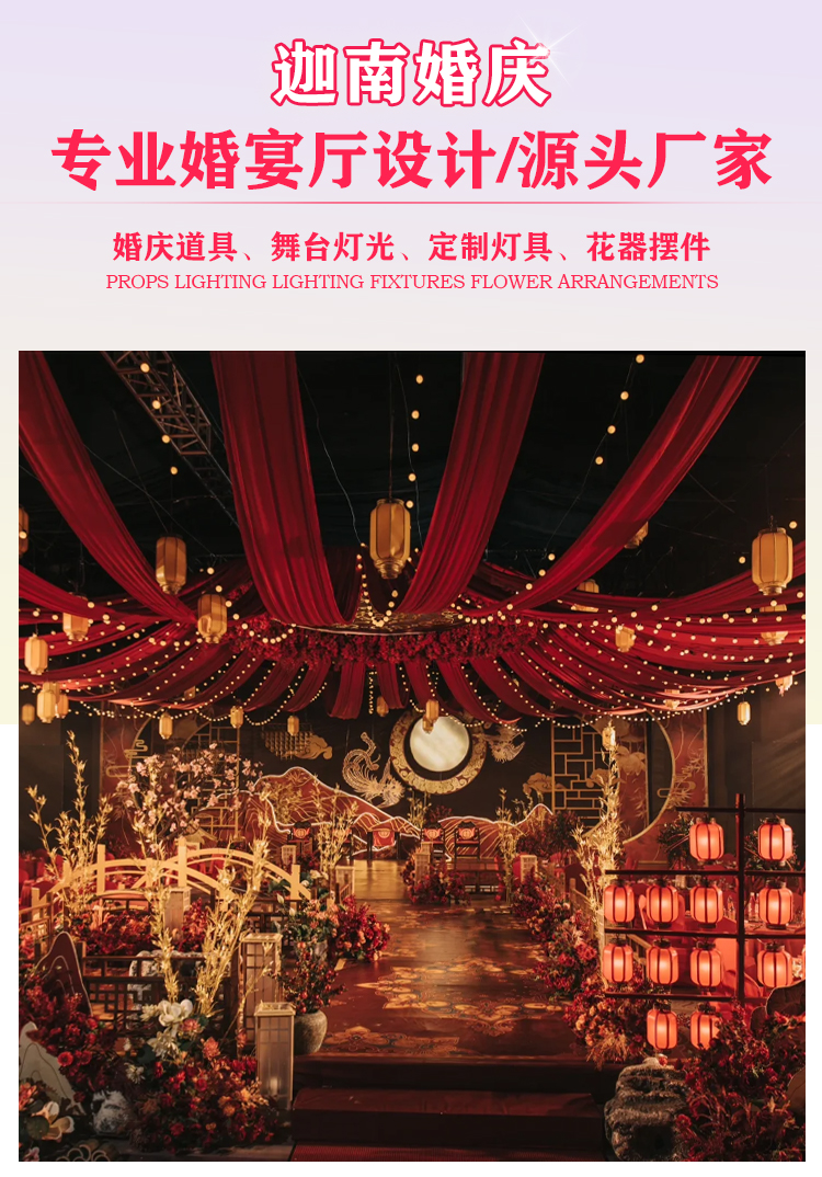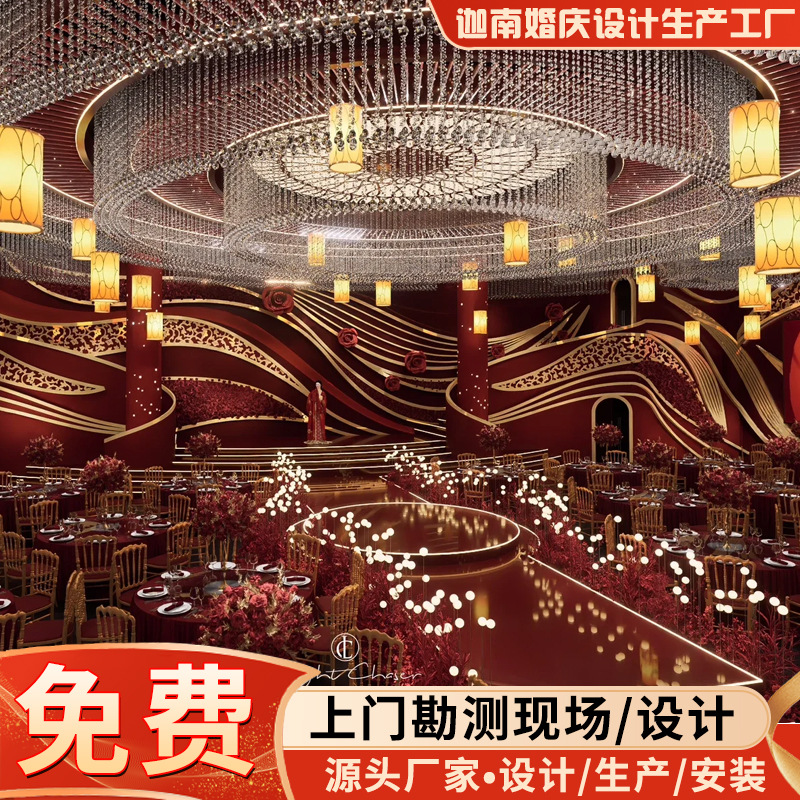 中式风婚礼堂婚宴厅落地安装一站式水晶中式全案定位骨架设计