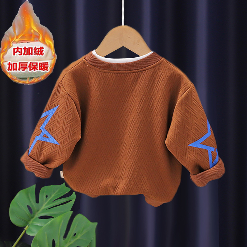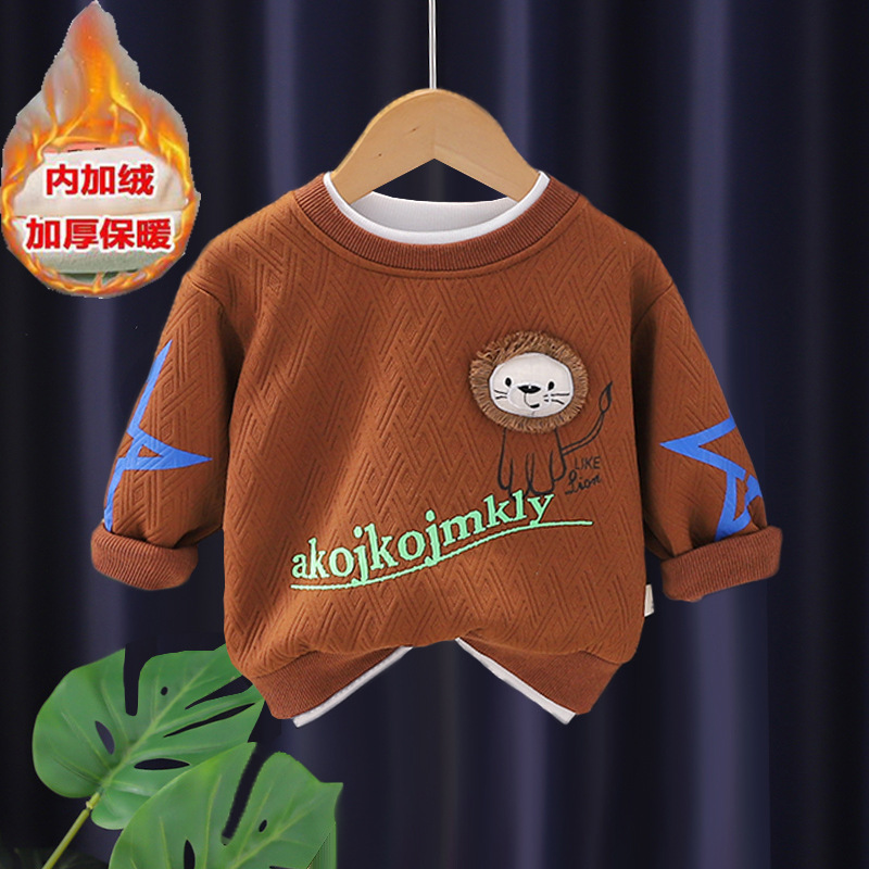 어린이 1-4 세 가을과 겨울 기모 풀오버 크루 넥 스웨터 소년 아기 겨울 기모 만화 코트