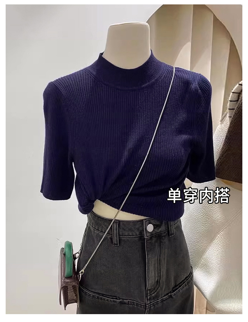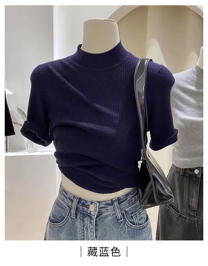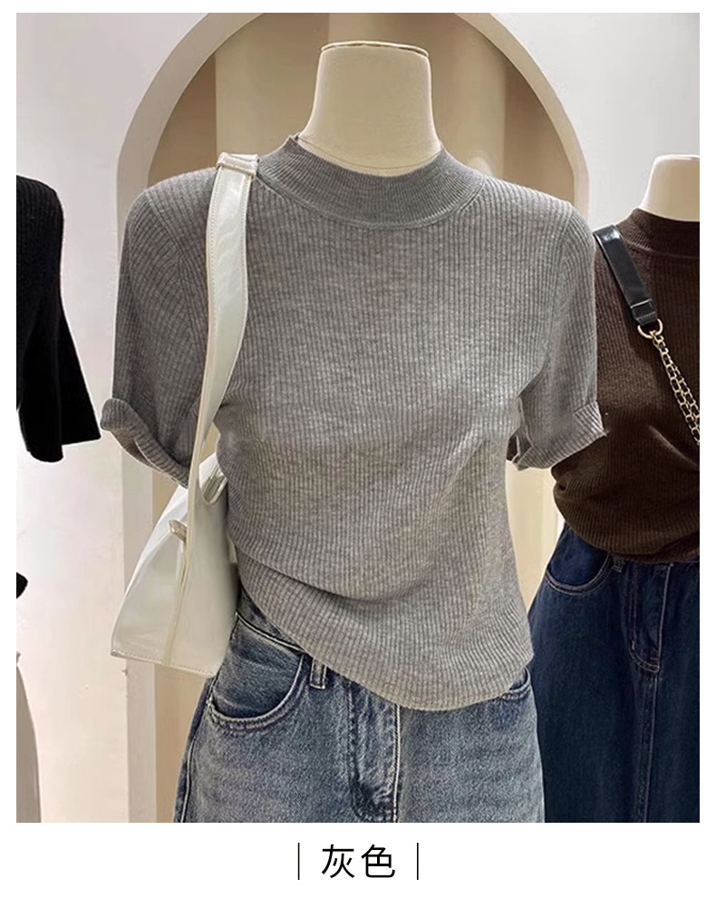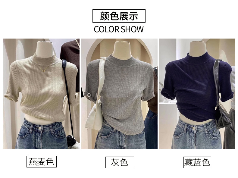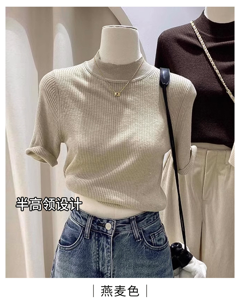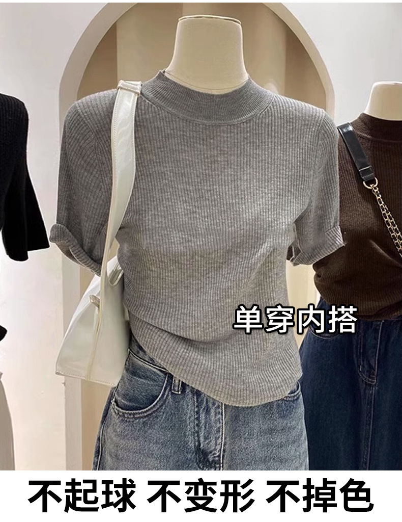 플러스 사이즈 모의 높이 칼라 니트 스웨터 여자 봄 가을 올 매치 하프 슬리브 우아한베이스 레이어 셔츠 소프트 왁스 쇼트 슬리브 웨스턴 스타일 탑 통통녀