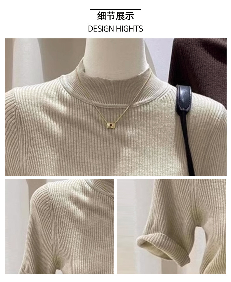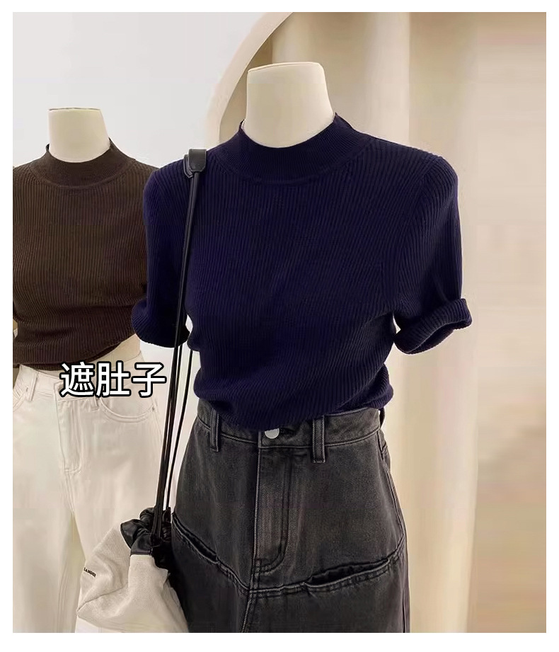 플러스 사이즈 모의 높이 칼라 니트 스웨터 여자 봄 가을 올 매치 하프 슬리브 우아한베이스 레이어 셔츠 소프트 왁스 쇼트 슬리브 웨스턴 스타일 탑 통통녀스토어 가기
