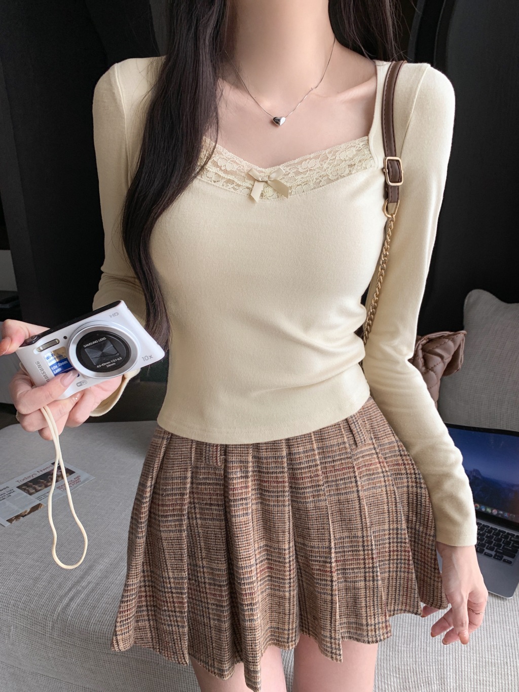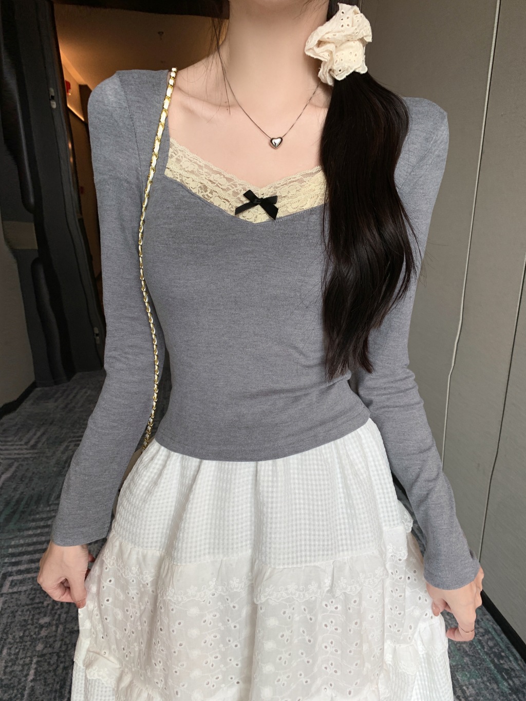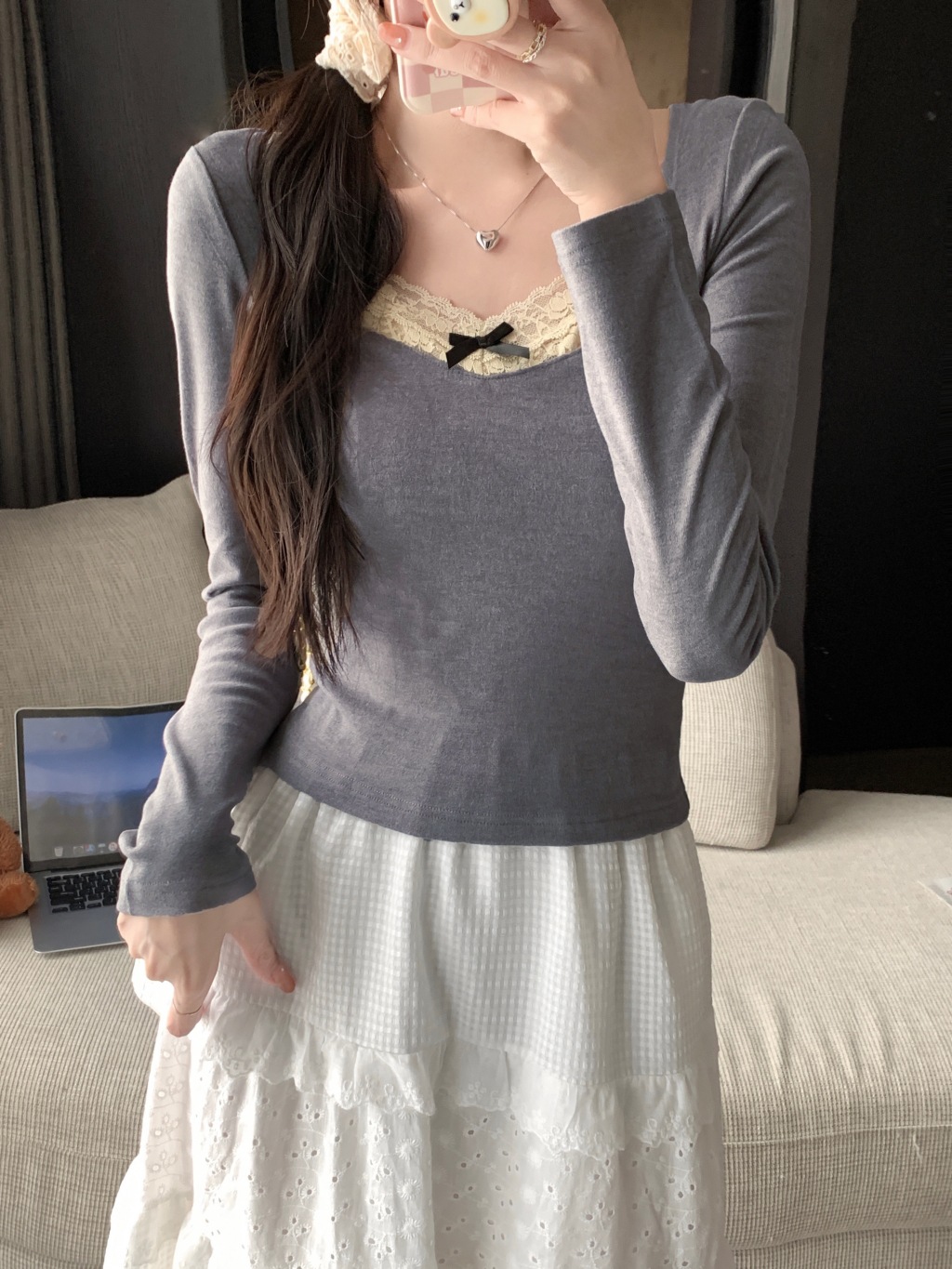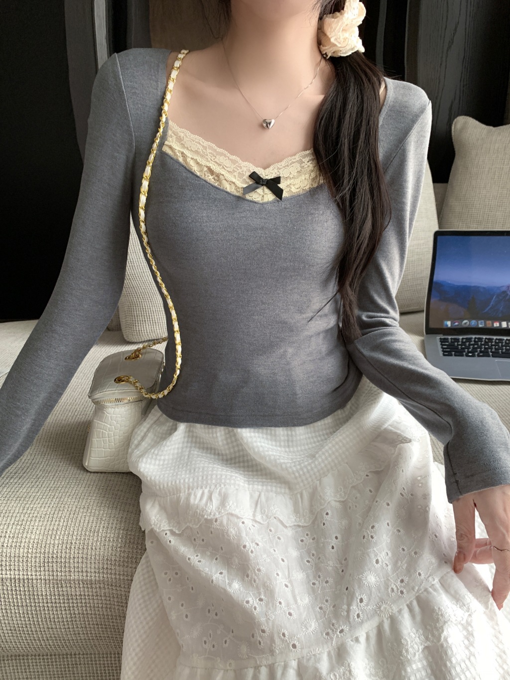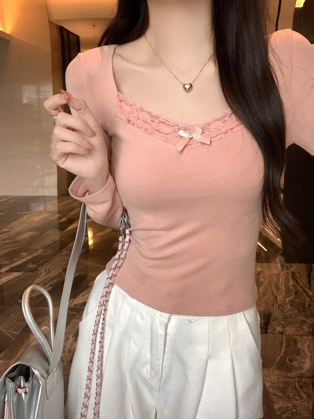 가을과 겨울 실 드 벨벳 샌딩 패딩 따뜻한 기질 레이스 긴팔 티셔츠 여성베이스 셔츠
