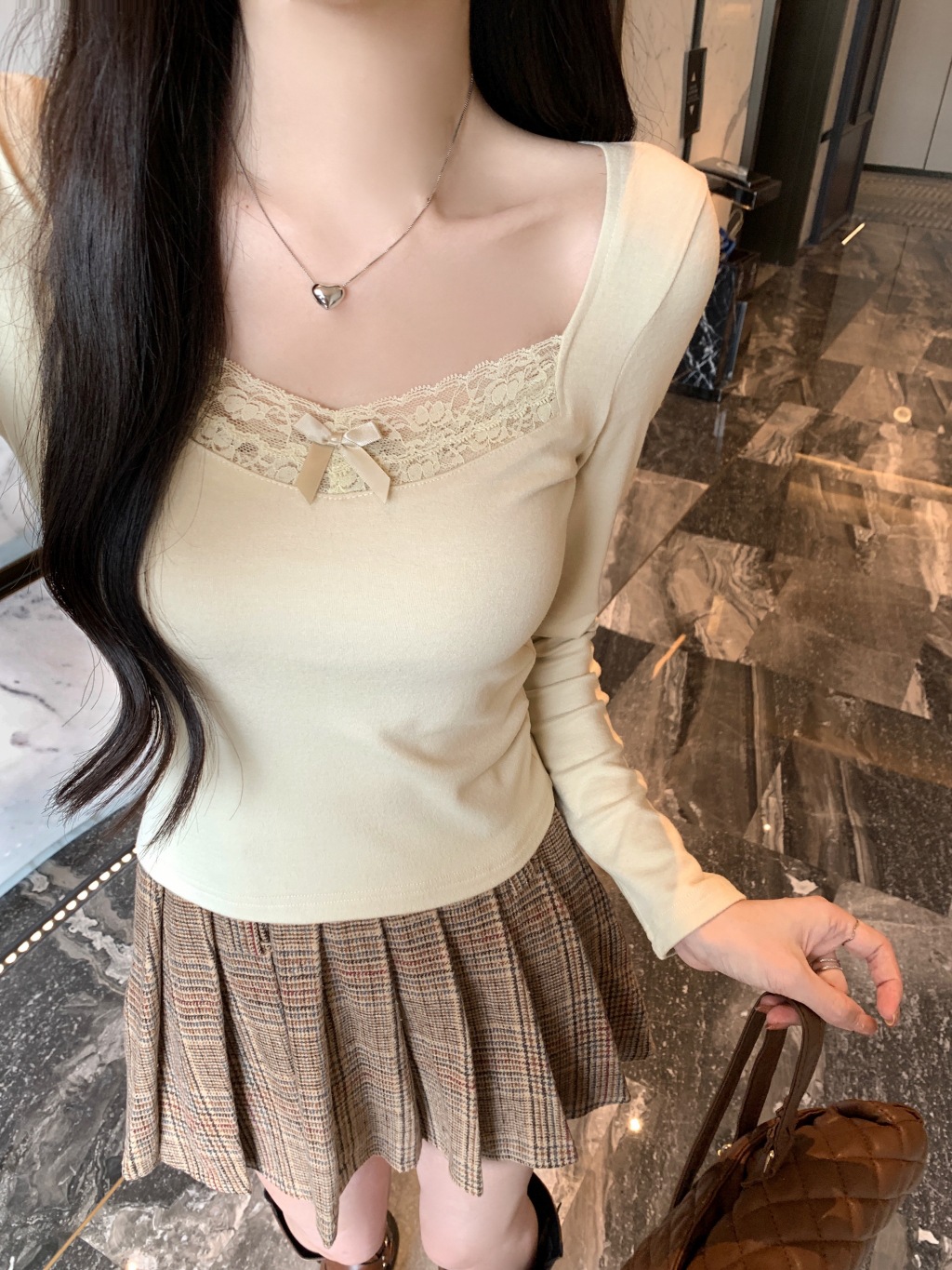 가을과 겨울 실 드 벨벳 샌딩 패딩 따뜻한 기질 레이스 긴팔 티셔츠 여성베이스 셔츠스토어 가기