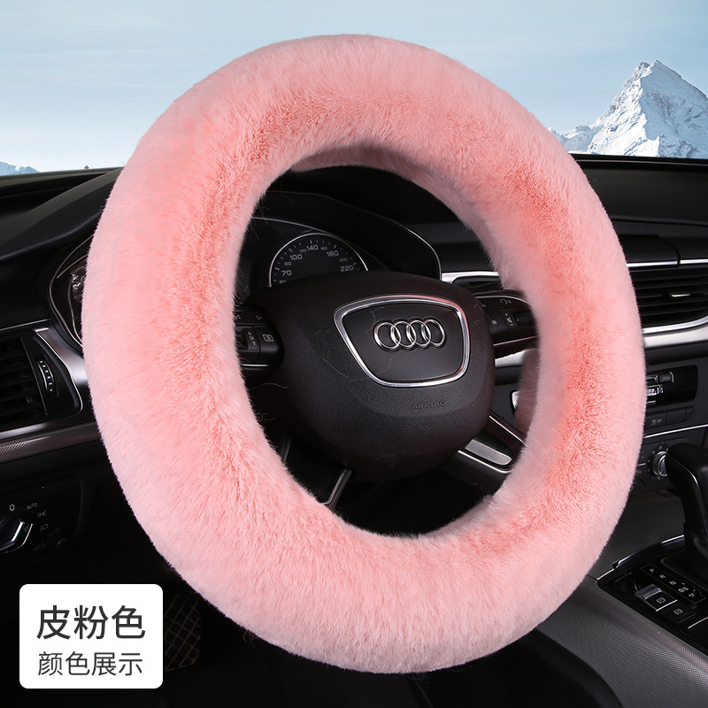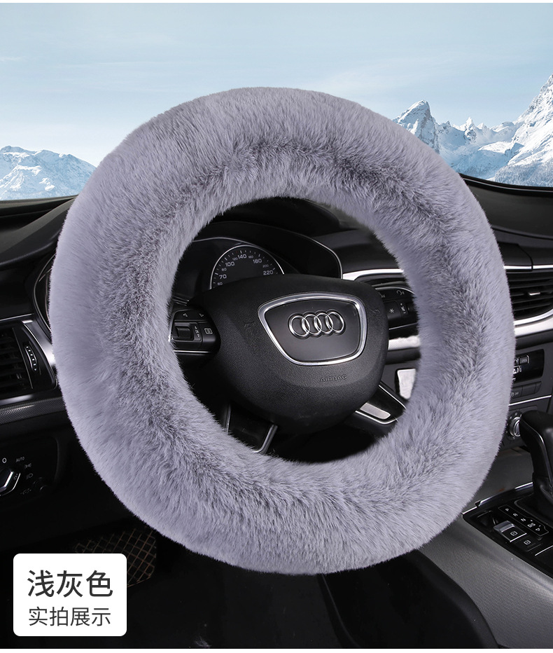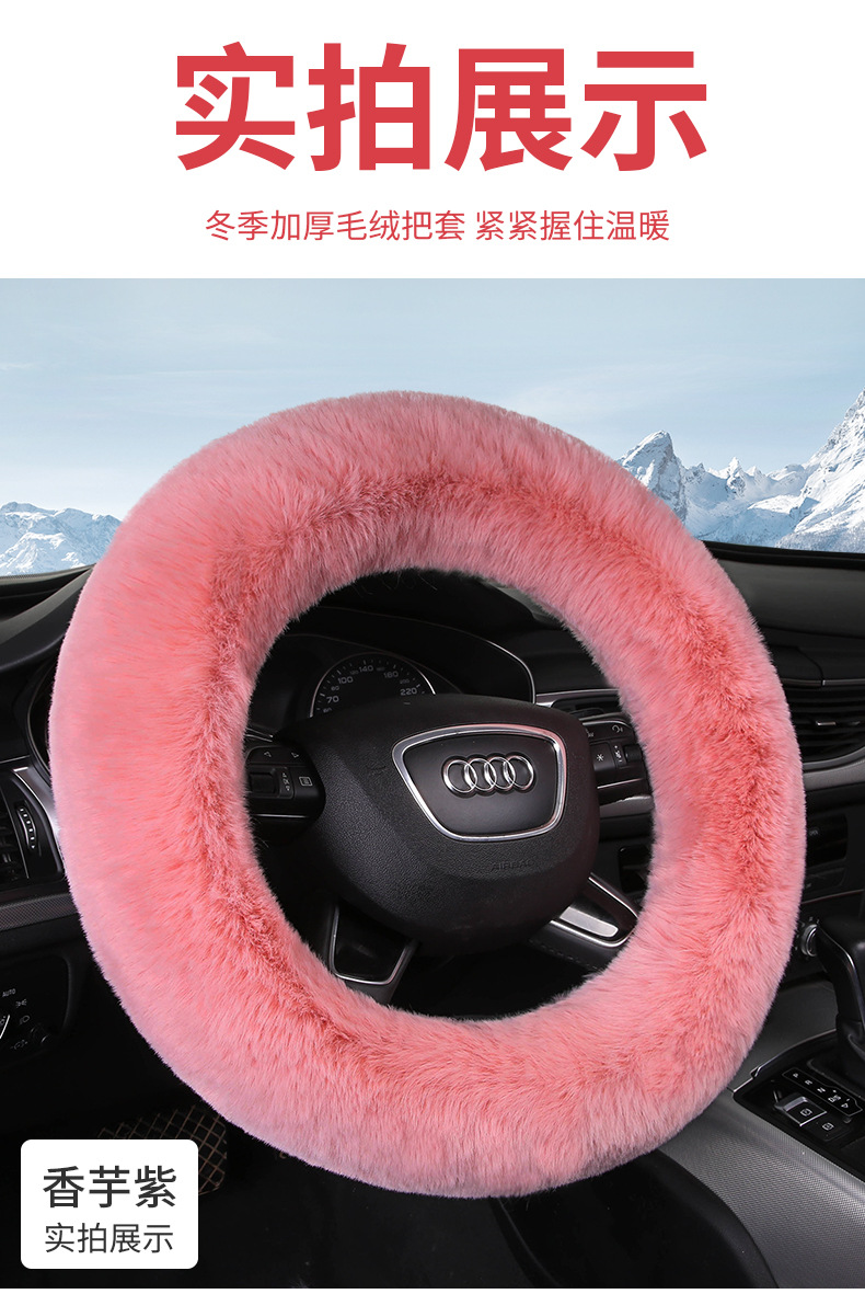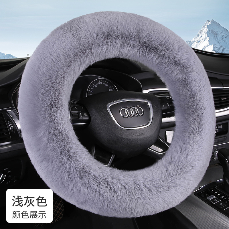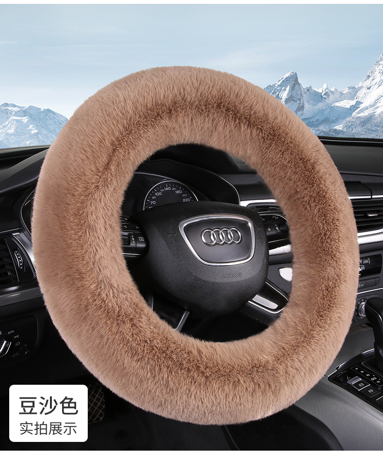 2024년 신형 토끼털 자동차 핸들 커버 겨울용 보온 만능 고무링 커버 미끄럼 방지 및 동결 방지 도매