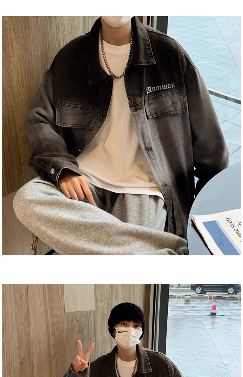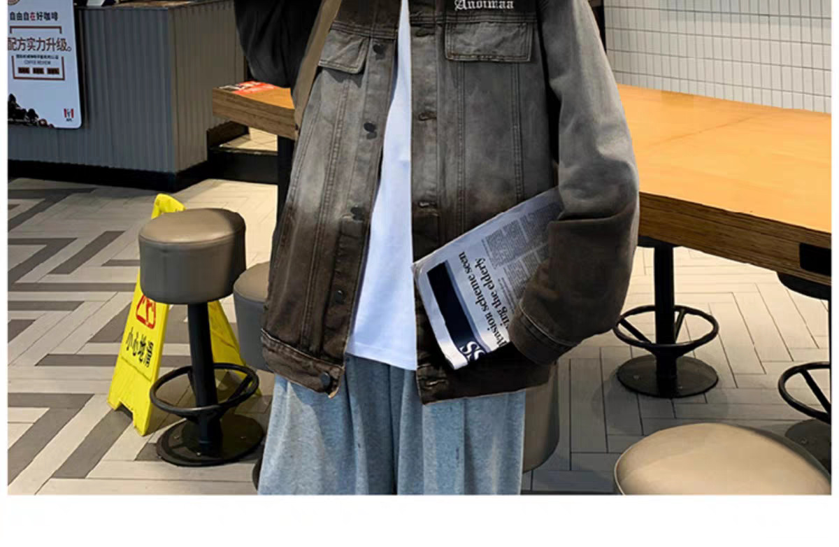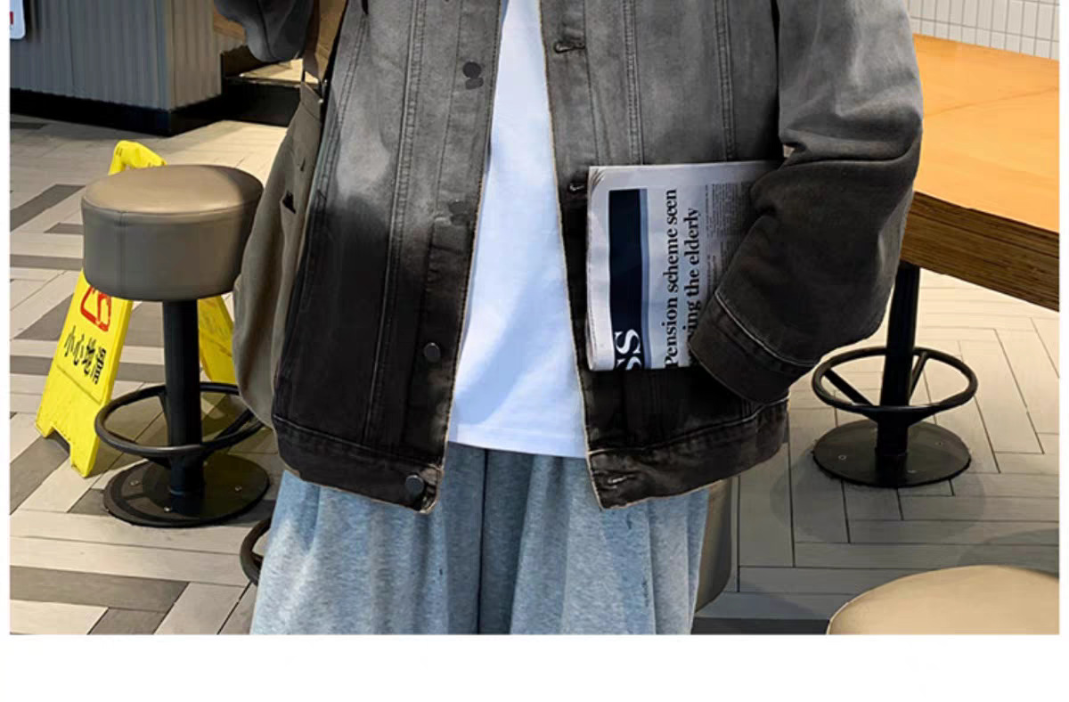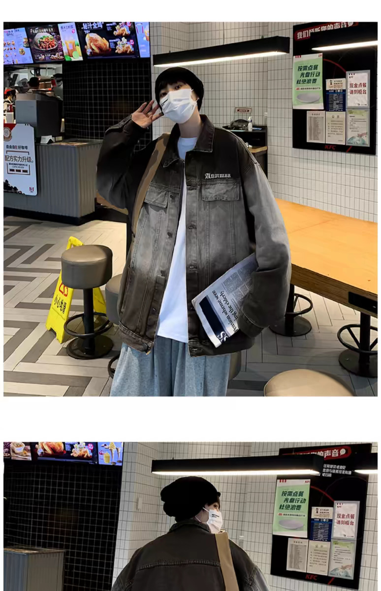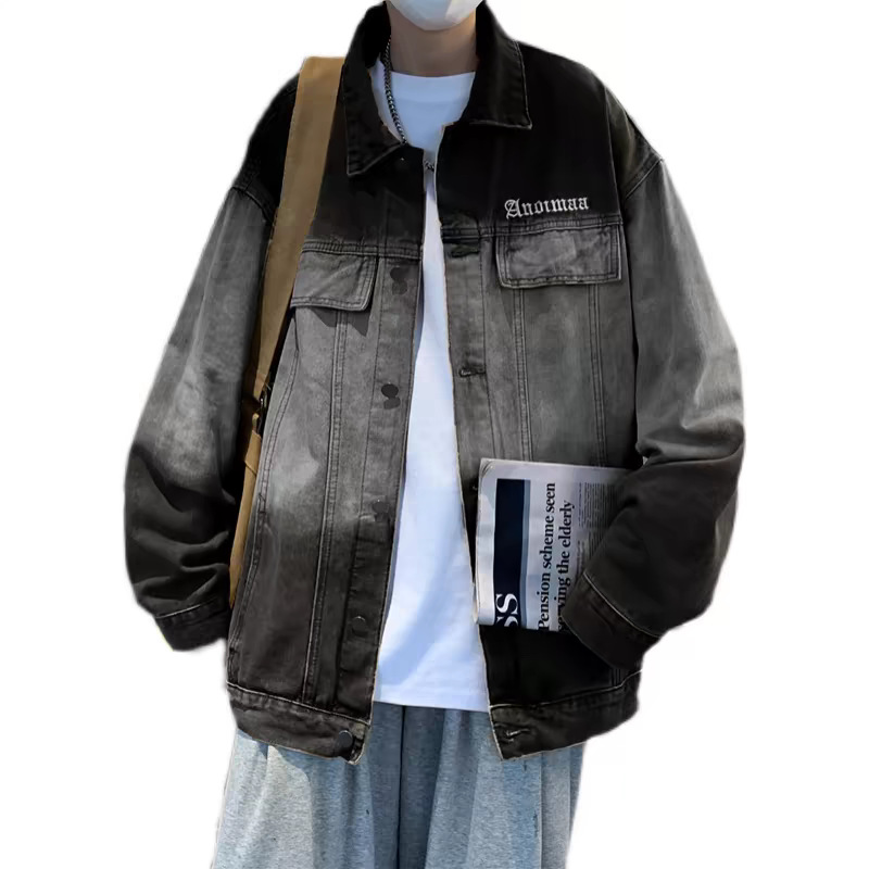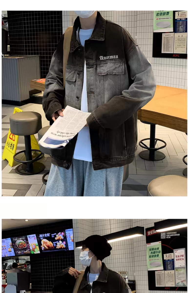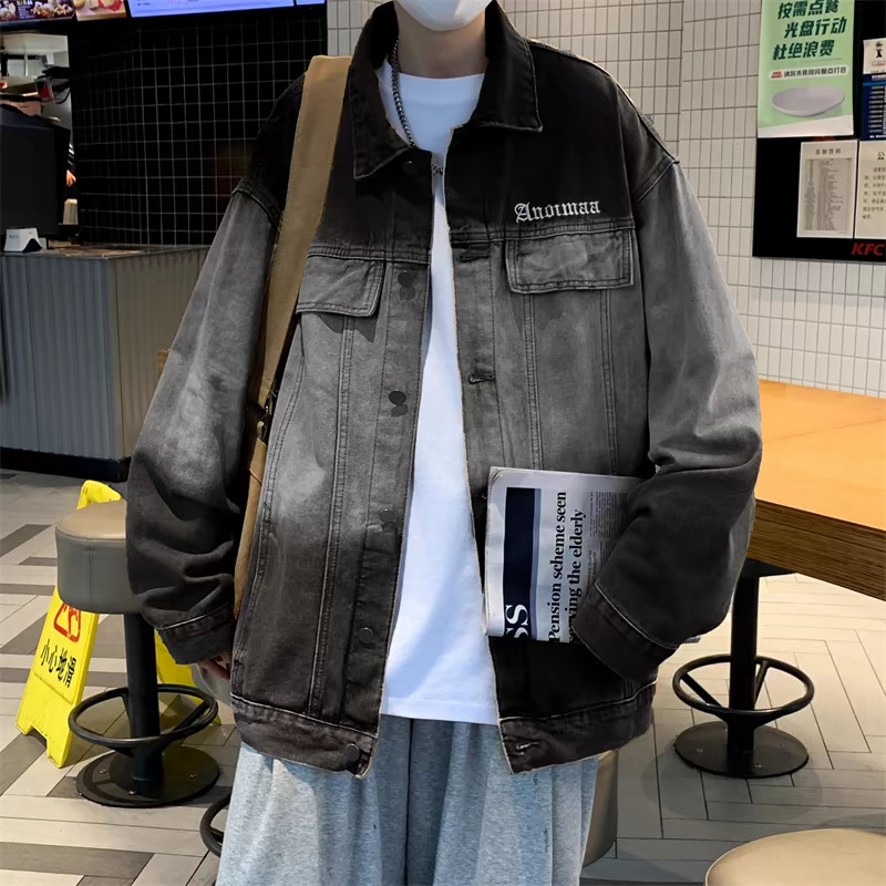 미국식 바이브 레트로 그라디언트 데님 재킷 남성 봄과 가을 패션 브랜드 하이 스트리트 플럼 잘 생긴 느슨한 캐주얼 작업복 재킷스토어 가기