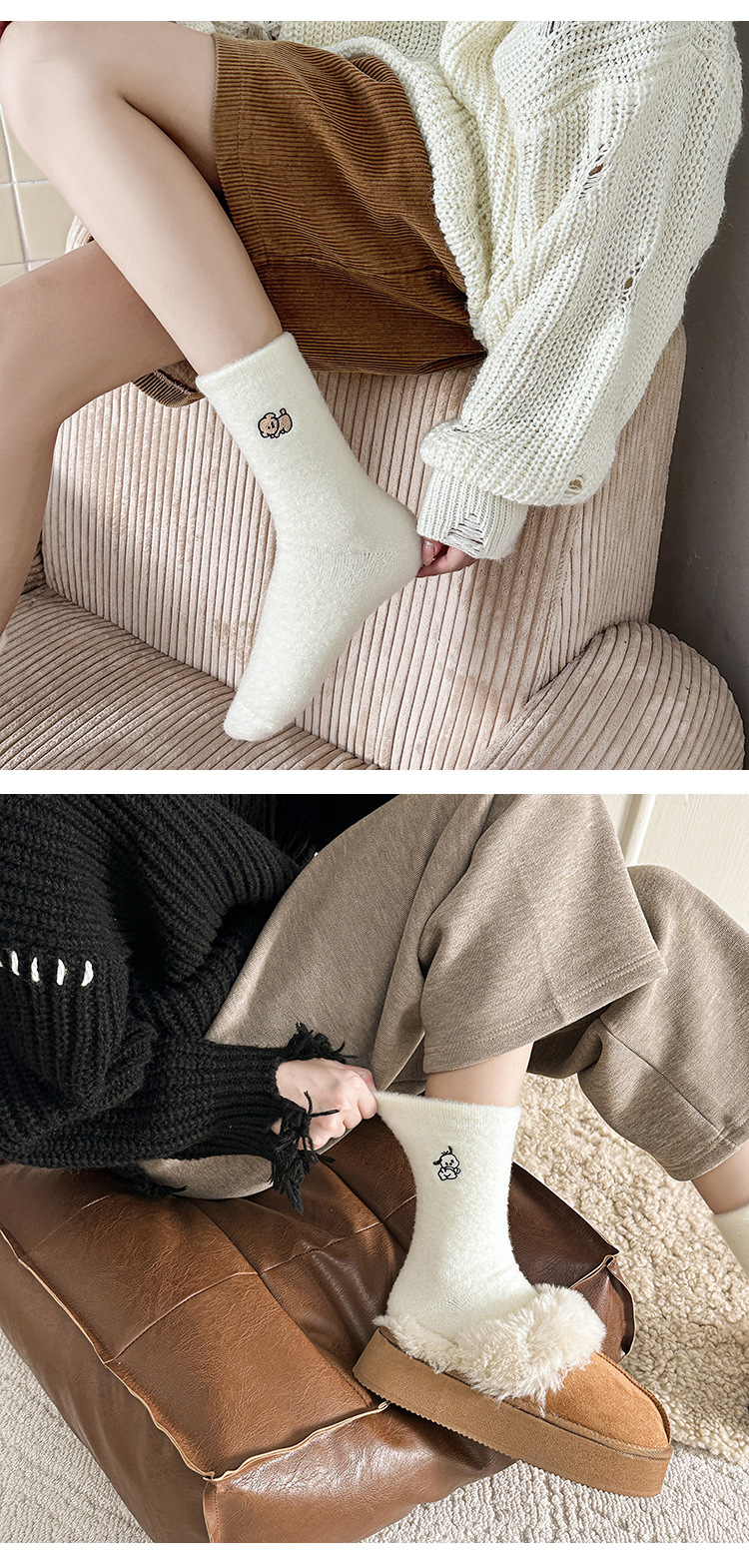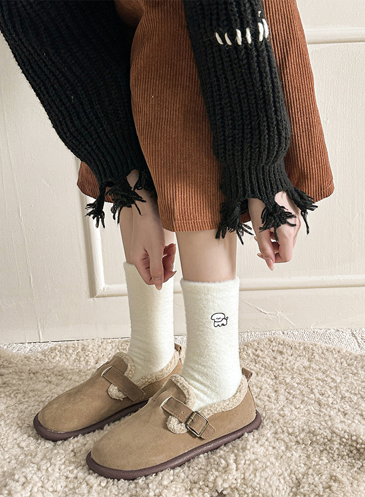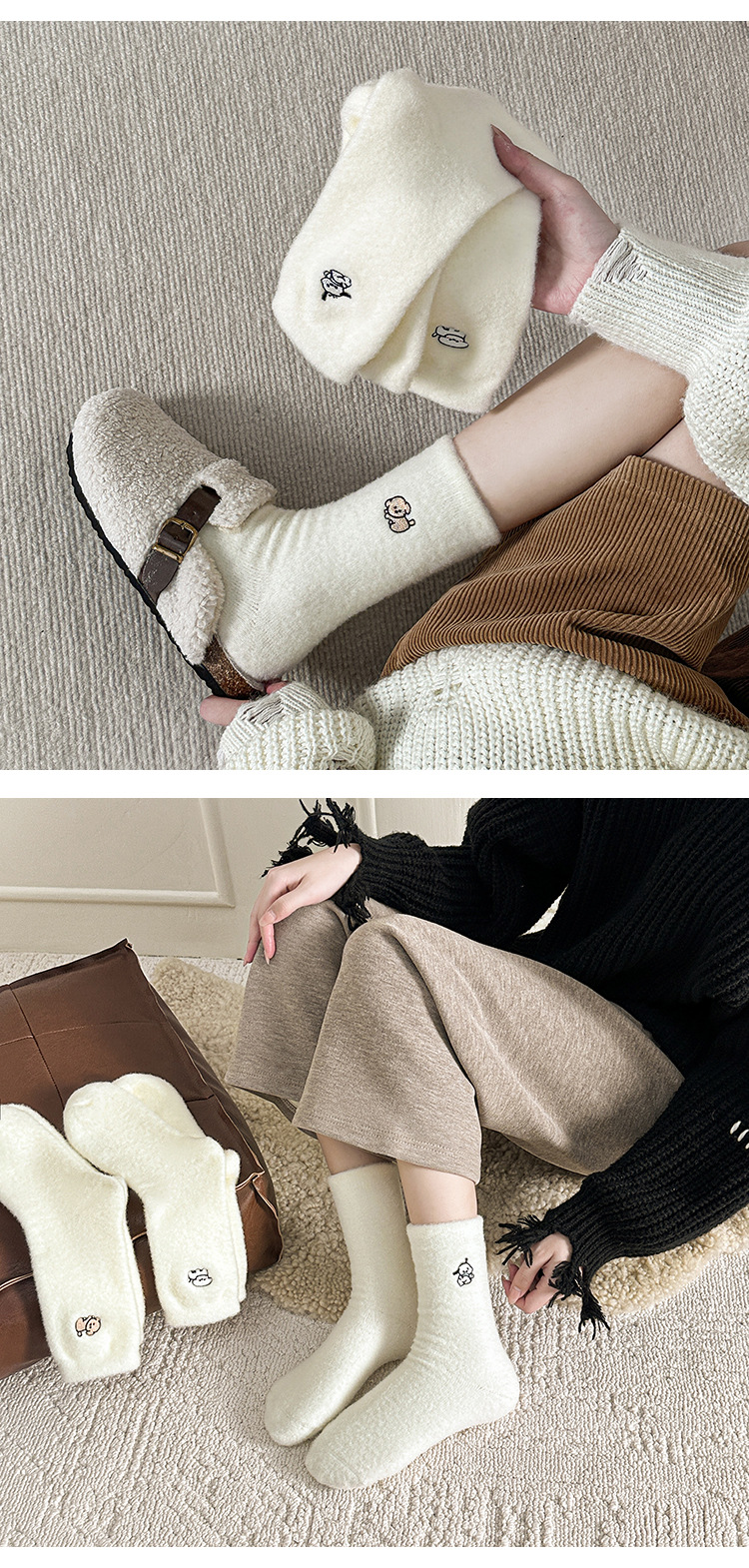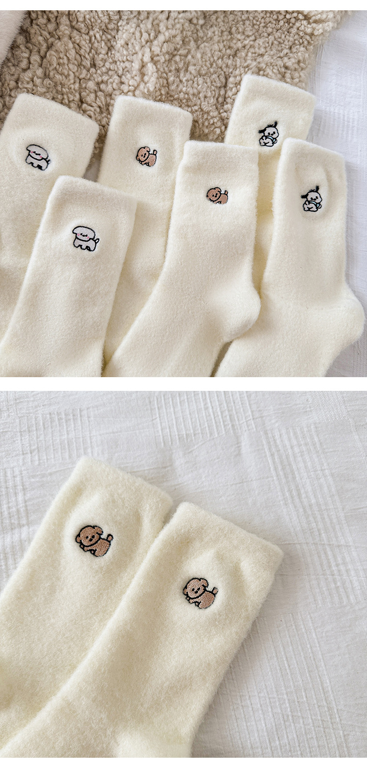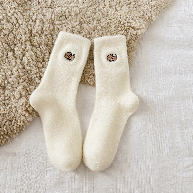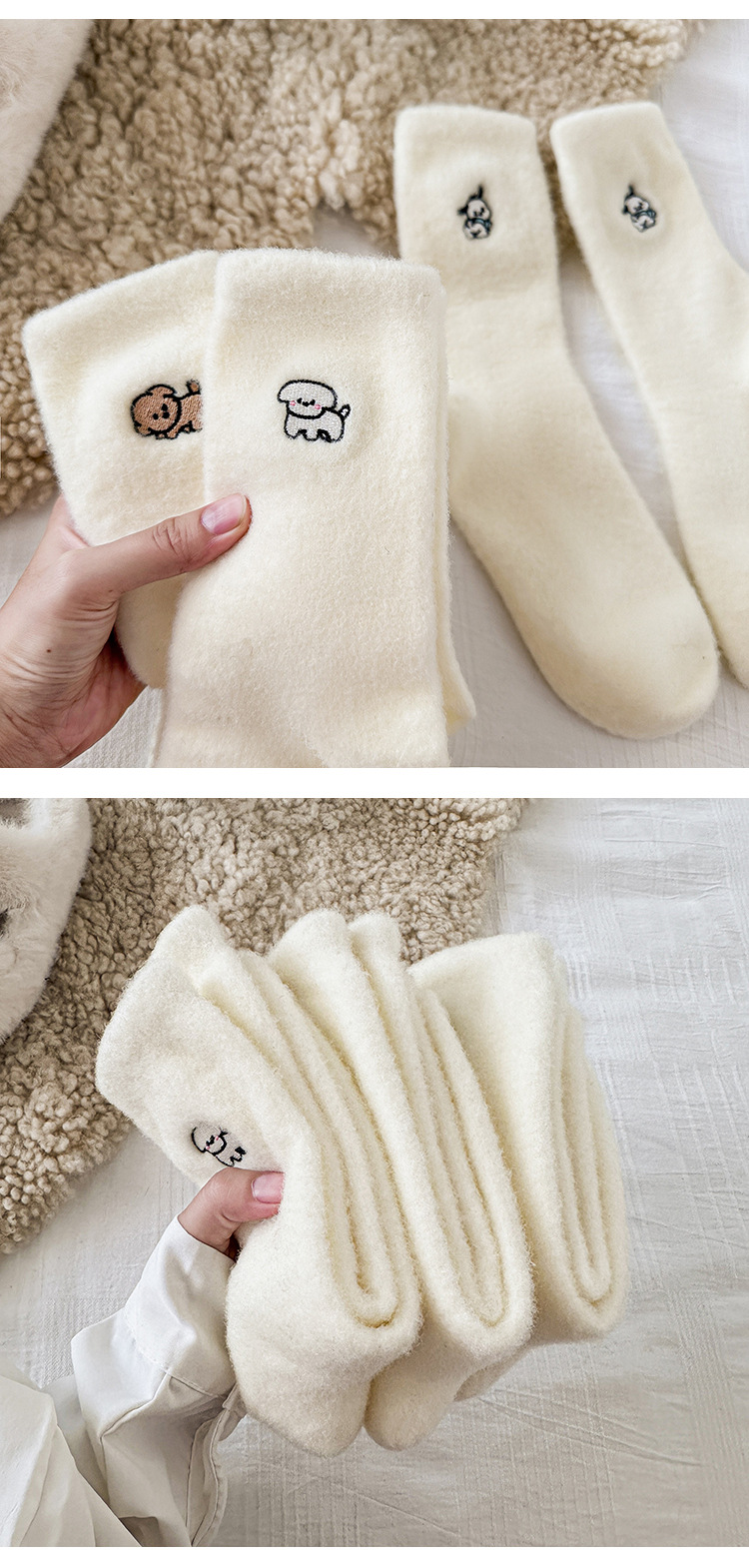 밀크 화이트 양말 여성의 겨울 호주 벨벳 두꺼운 따뜻한 양말 귀여운 만화 강아지 홈 잠자는 달 양말스토어 가기