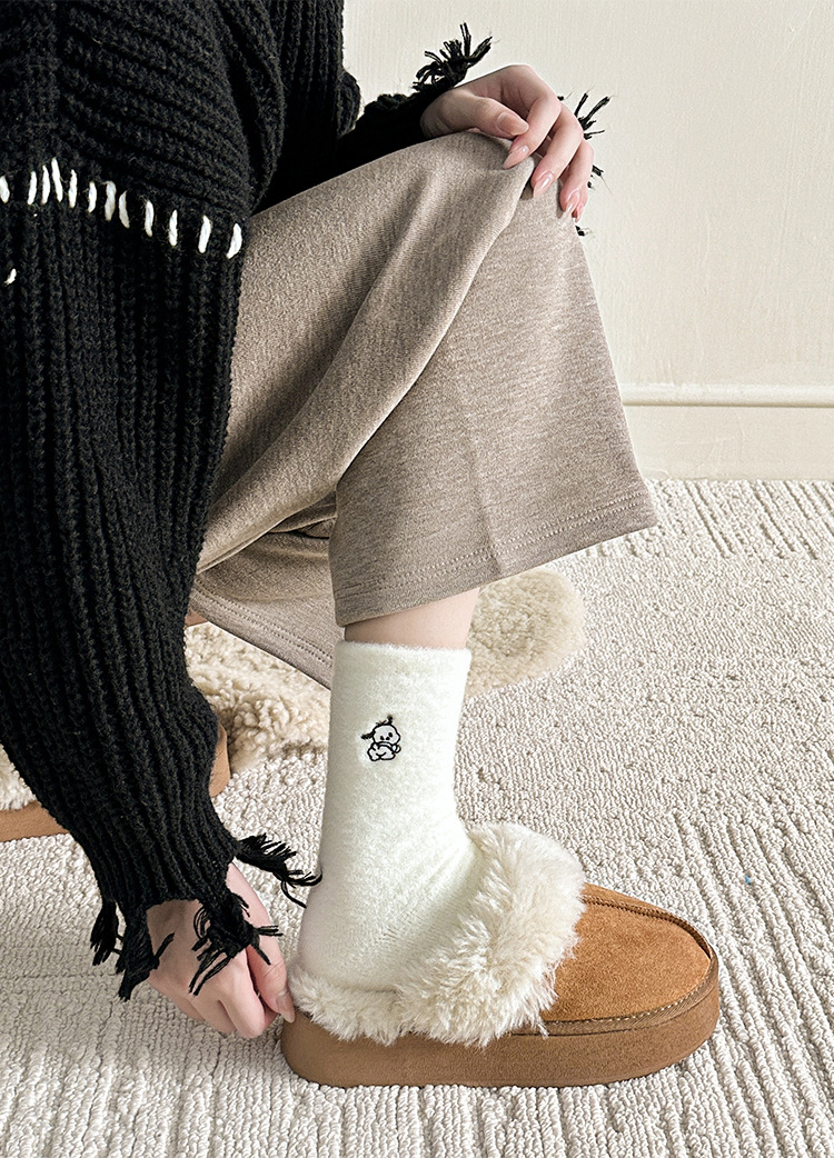밀크 화이트 양말 여성의 겨울 호주 벨벳 두꺼운 따뜻한 양말 귀여운 만화 강아지 홈 잠자는 달 양말