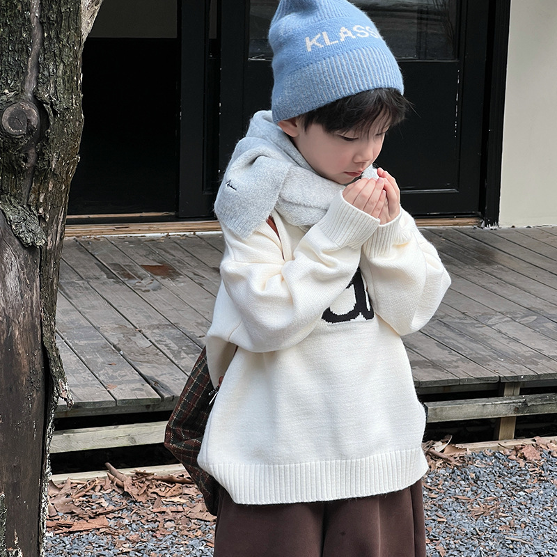 아동복 남아용 스웨터 2025 가을 겨울 신상 한국 스타일 중대형 아동 패션 따뜻한 니트웨어 겨울 의류 도매