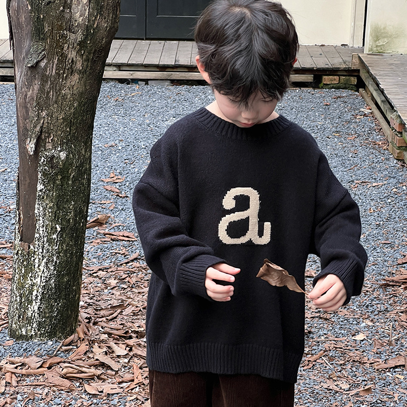 아동복 남아용 스웨터 2025 가을 겨울 신상 한국 스타일 중대형 아동 패션 따뜻한 니트웨어 겨울 의류 도매스토어 가기