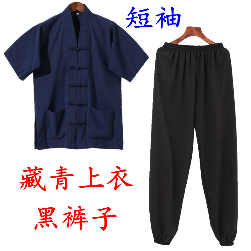 도교 용품 의류 도교 원피스 도교 로브 도교 원피스 버클 짧은 재킷 짧은 소매 최고 바지 세트 얇은 여름 없음