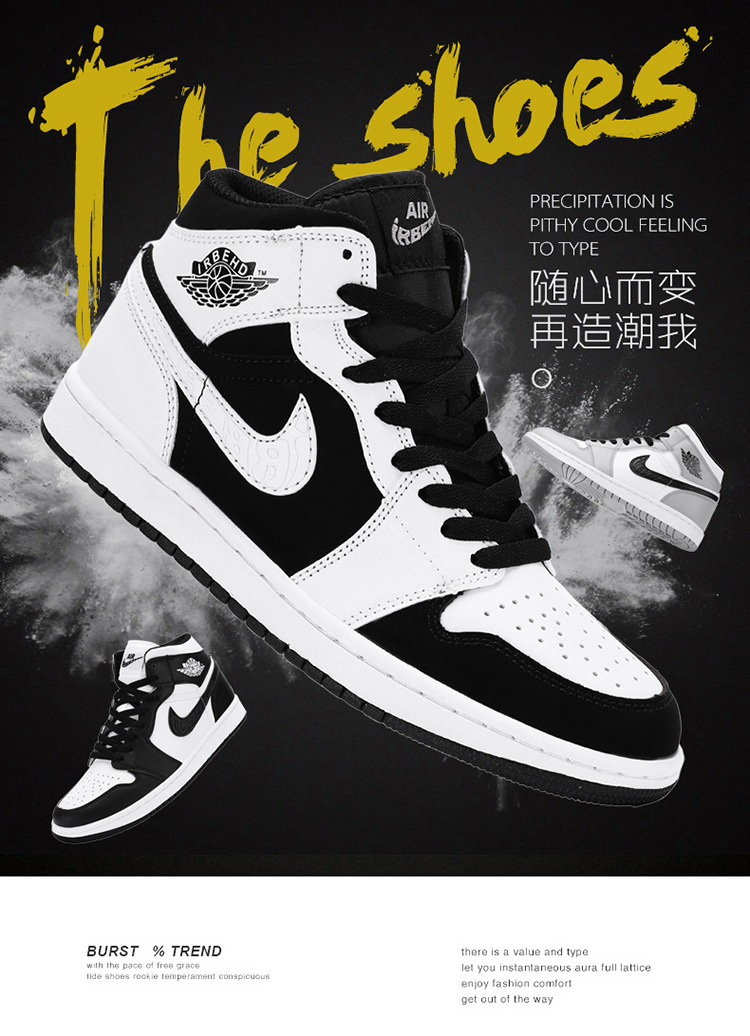 (푸티 안 공장) aj 남성 신발 미드 탑 리버스 흑백 팬더 공군 aj1 하이 탑 애쉬 농구 신발 여성 신발