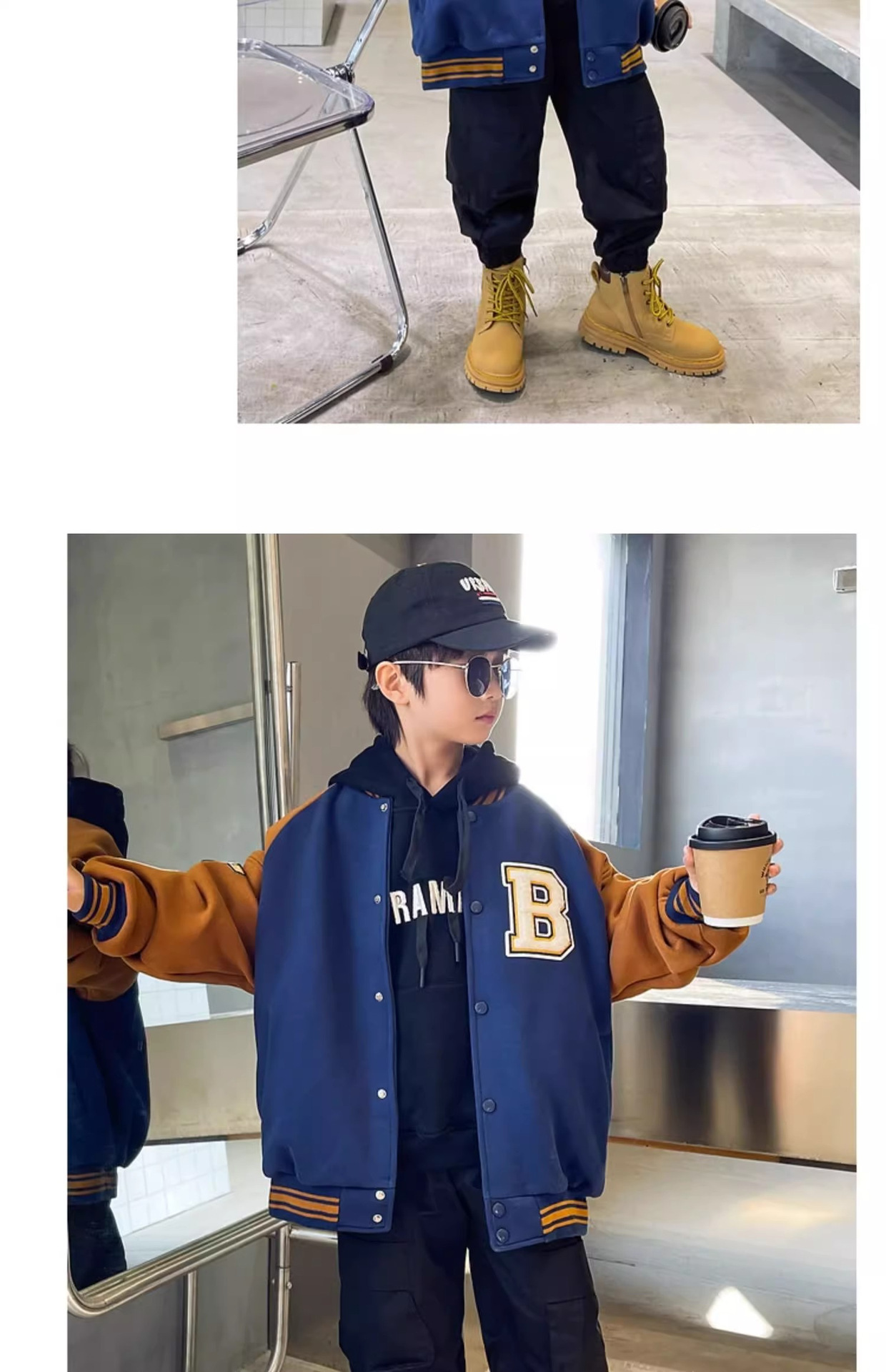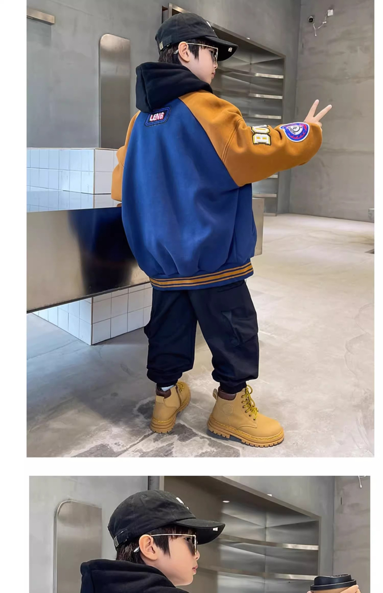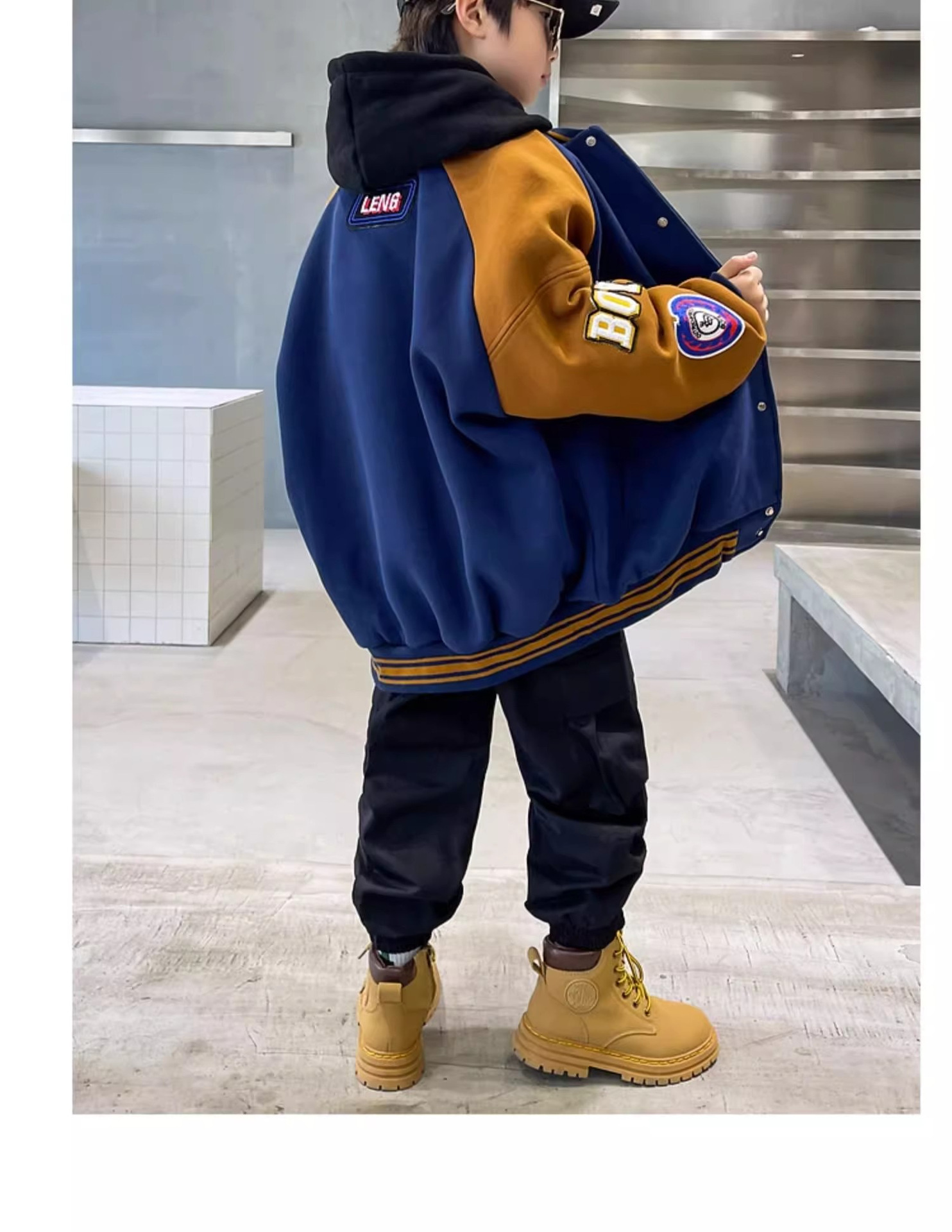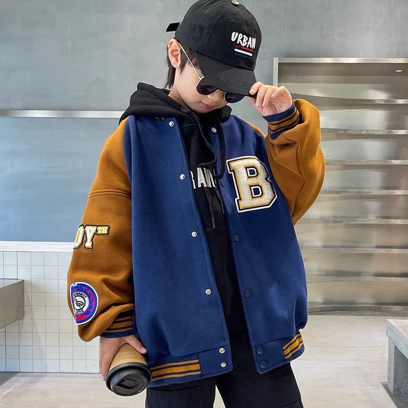 소년 가을 코트 2024 새로운 중대 어린이 봄과 가을 소년 가을 기모 가을과 겨울 야구 세트스토어 가기