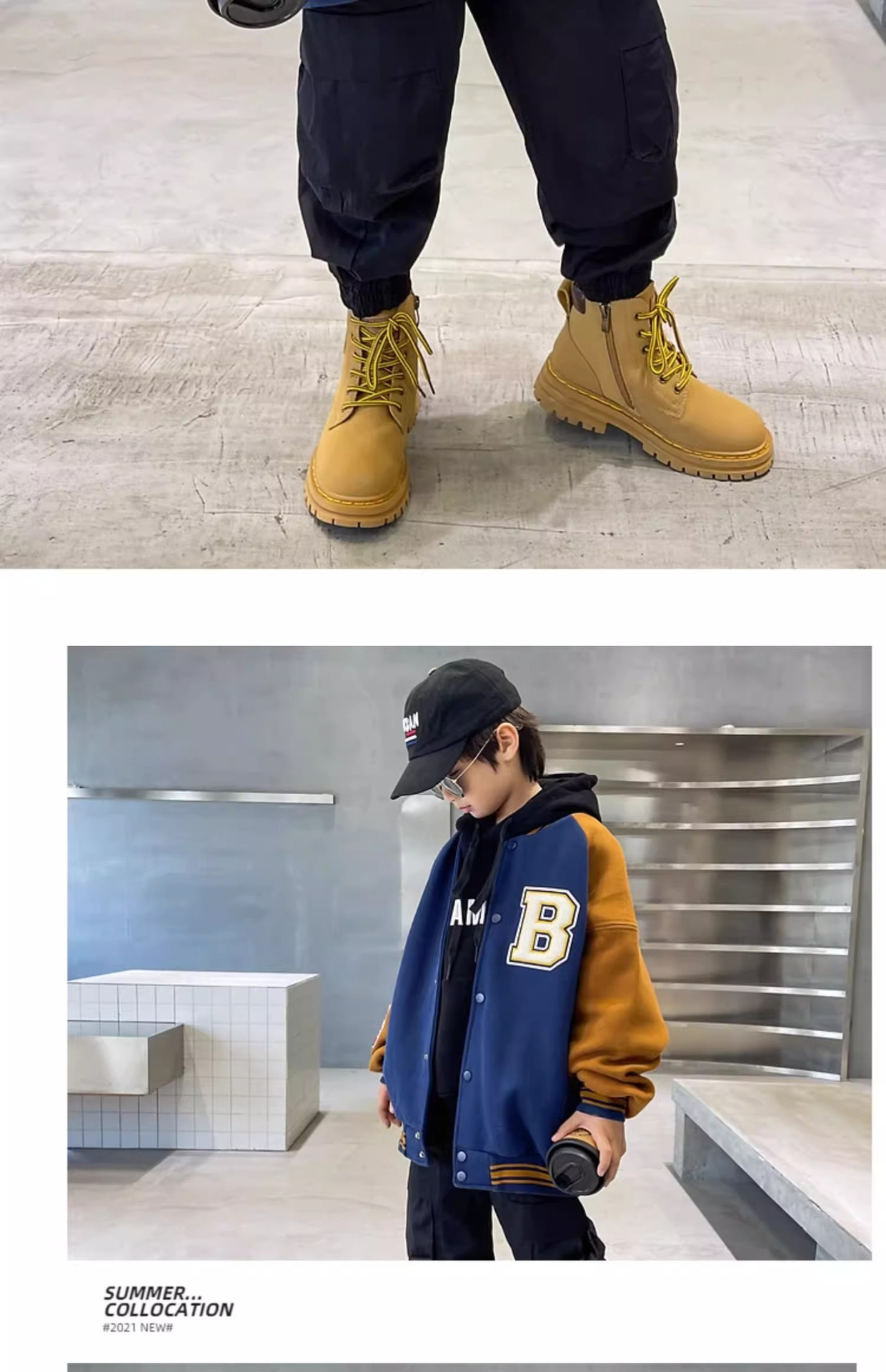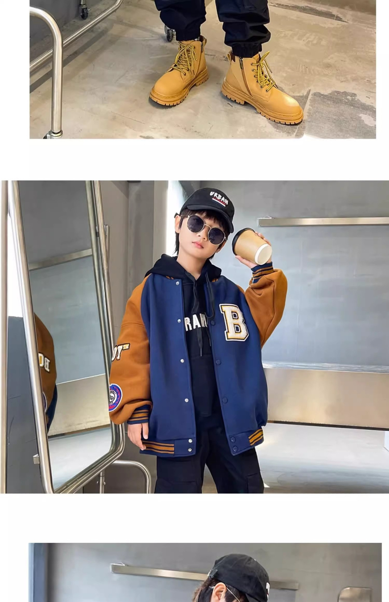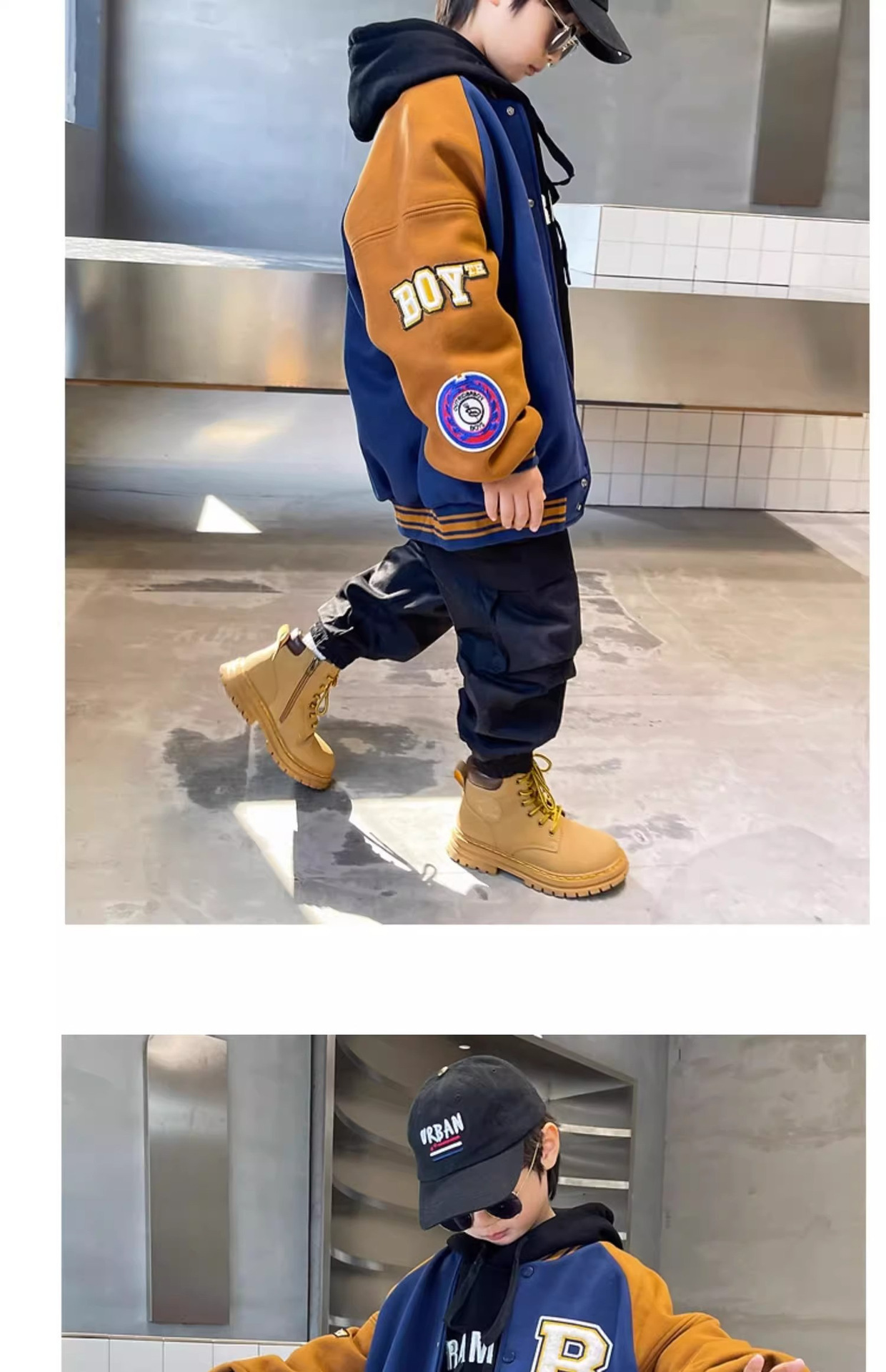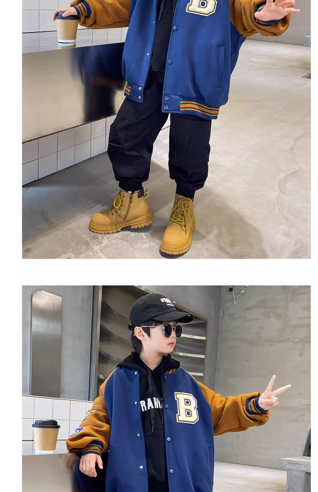 소년 가을 코트 2024 새로운 중대 어린이 봄과 가을 소년 가을 기모 가을과 겨울 야구 세트스토어 가기