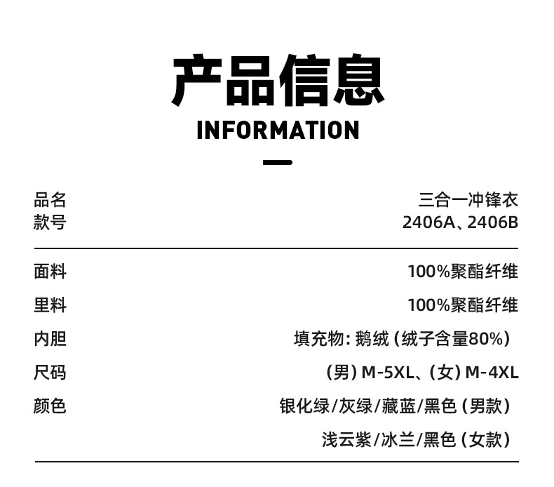 GB 러시 옷 여성 거위 아래로 분리 가능한 3 대 1 러시 옷 남성 방풍 방수 하이 퀄리티 작업복 맞춤형스토어 가기