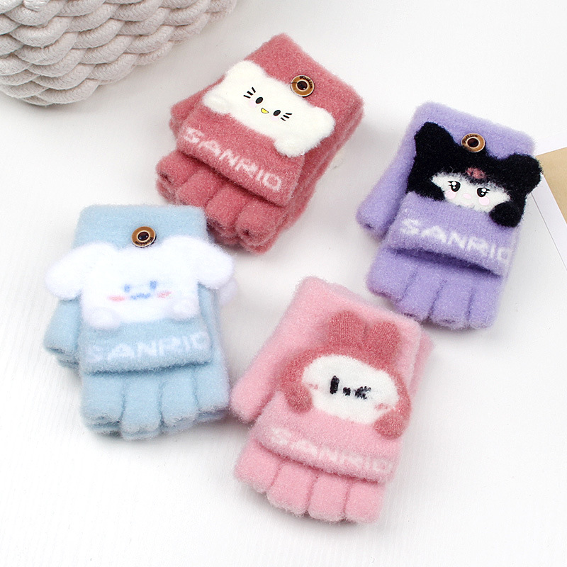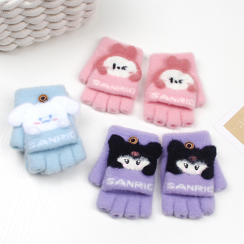 어린이 장갑 겨울 소녀 아기 귀여운 따뜻한 두꺼운 다섯 손가락 플립 커버 쓰기 어린이 초등학생 반 손가락 여자