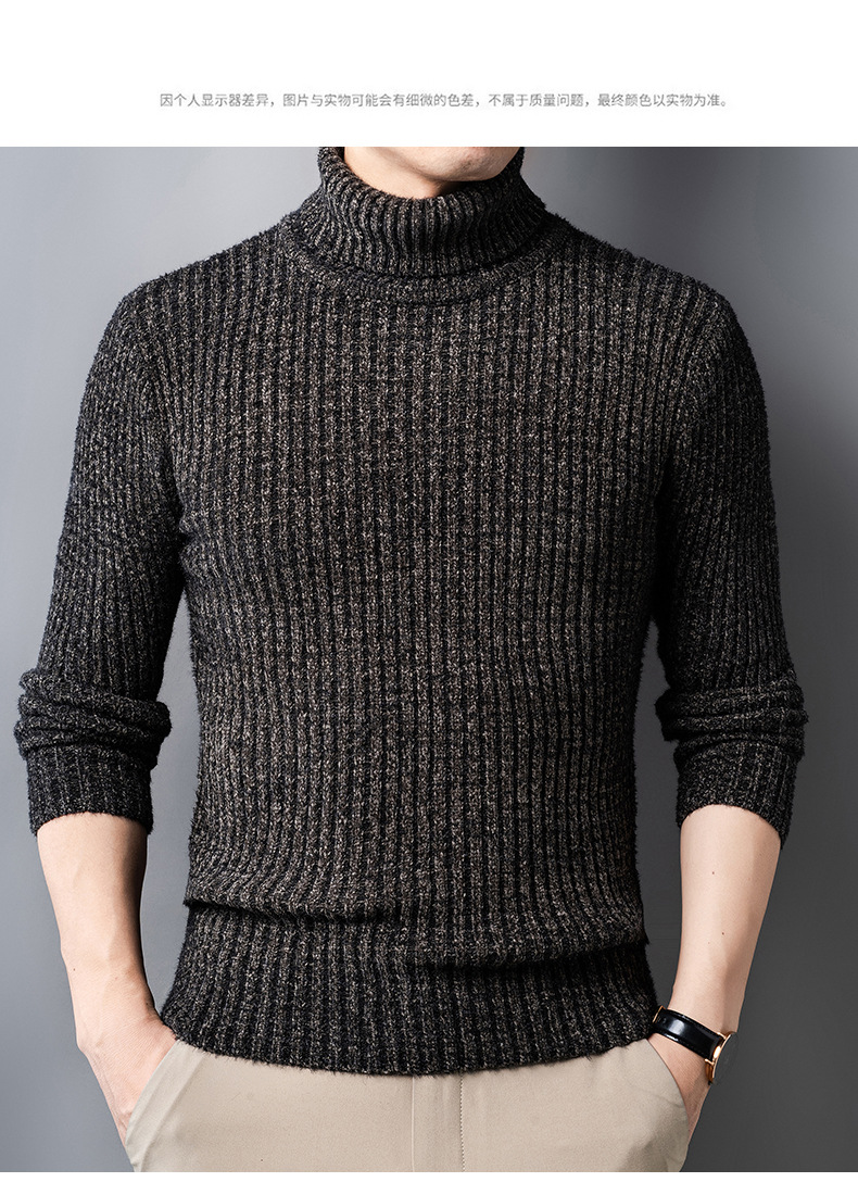 국경 간 대외 무역 남자 스웨터 겨울 새로운 Chenille 두꺼운 따뜻한 높은 목 솔리드 컬러 중년 니트 베이스 셔츠
