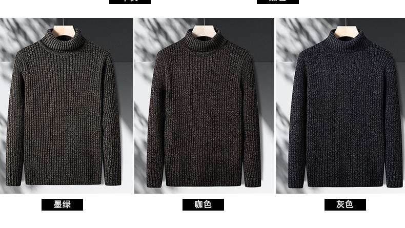 국경 간 대외 무역 남자 스웨터 겨울 새로운 Chenille 두꺼운 따뜻한 높은 목 솔리드 컬러 중년 니트 베이스 셔츠스토어 가기