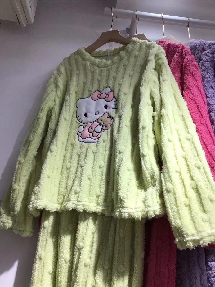 여성을위한 만화 고양이 산호 벨벳 잠옷 2025 겨울 새로운 벨벳 두꺼운 가정 의류 겨울 따뜻한 긴팔 양복스토어 가기